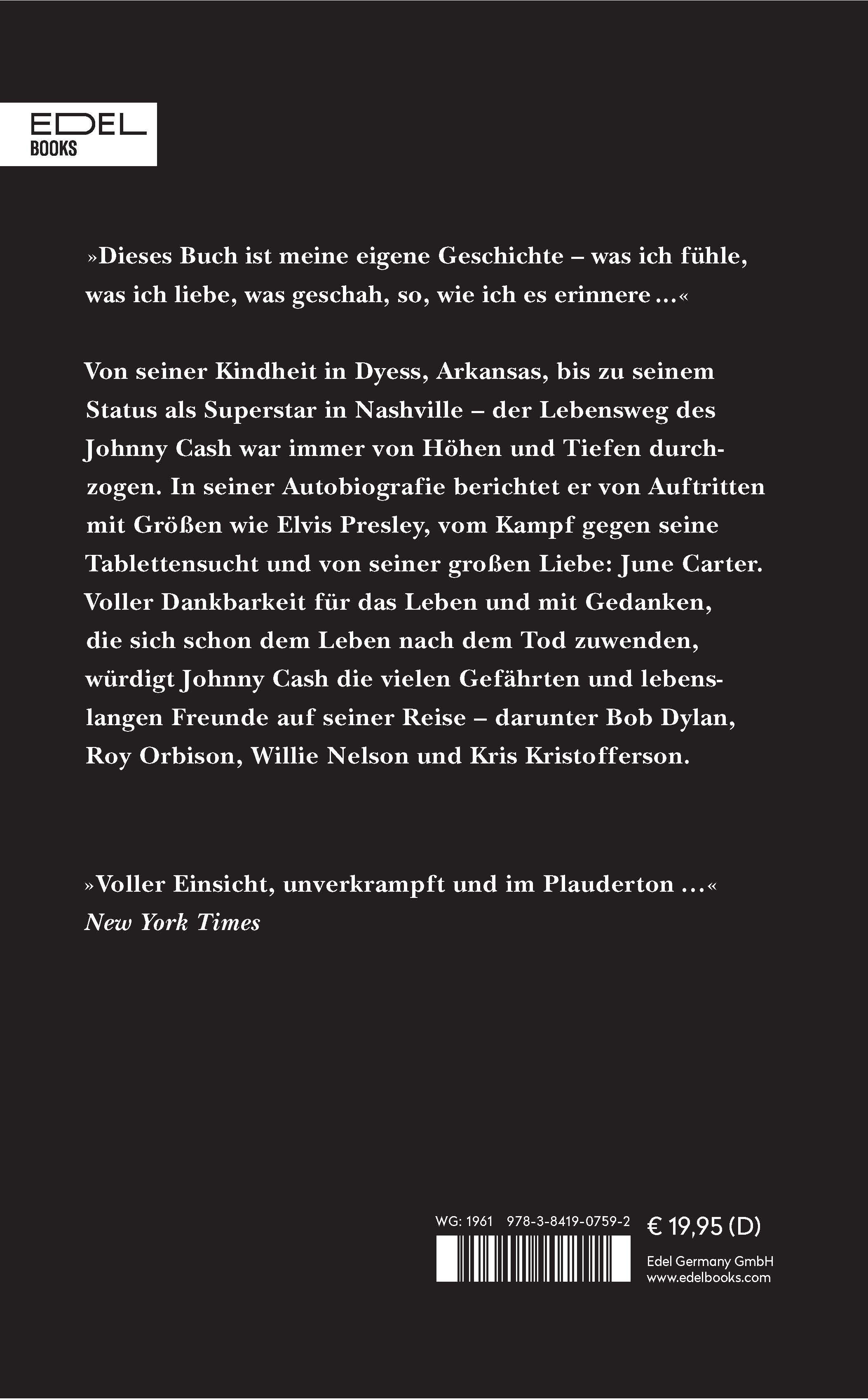 Countrymusiklegende, Mann der Religion, tablettensüchtiger Raufbold, Bewahrer amerikanischer Traditionen und schließlich Kultfigur für die junge Generation. Er war der »Man in Black« und eine Persönlichkeit voller Widersprüche. In dieser Autobiografie, die auch die Grundlage für den Erfolgsfilm »Walk the Line« bildete, berichtet Johnny Cash über Höllenzeiten und Höhenflüge, über seine Kämpfe und hart errungenen Triumphe und über die Menschen, die ihn geprägt haben. Cash schrieb das Buch sechs Jahre vor seinem Tod.