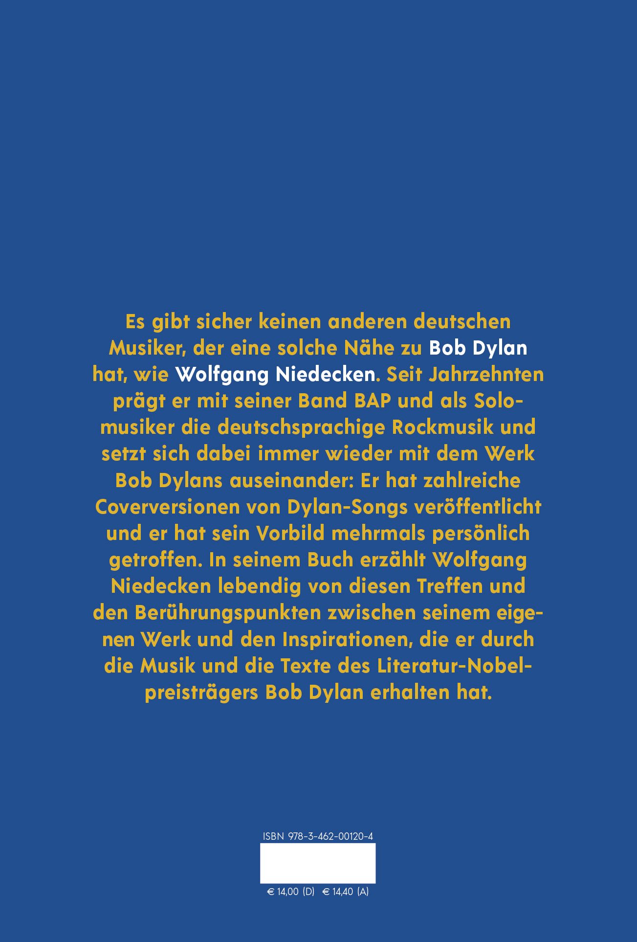 »Für mich ist er der größte unter den amerikanischen Songwritern. Kein anderer Musiker hat mir einen tieferen Einblick in die amerikanische Seele gegeben. Viele meiner Songs wären ohne das Werk Bob Dylans nicht entstanden.« Es gibt sicher keinen anderen deutschen Musiker, der eine solche Nähe zu Bob Dylan hat, wie Wolfgang Niedecken. Seit Jahrzehnten prägt er mit seiner Band BAP und als Solomusiker die deutschsprachige Rockmusik und setzt sich dabei immer wieder mit dem Werk Bob Dylans auseinander: Er hat zahlreiche Coverversionen von Dylan Songs veröffentlicht, hat Bob Dylans Buch »Chronicles« als Hörbuch eingelesen und im Buchhandel und auf Veranstaltungen präsentiert, er ist den Lebensspuren Bob Dylans in der ARTE-Produktion »Bob Dylans Amerika« gefolgt, er hat sein Vorbild mehrmals persönlich getroffen. In seinem Buch erzählt Wolfgang Niedecken lebendig von diesen Treffen und den Berührungspunkten zwischen seinem eigenen Werk und den Inspirationen, die er durch die Musik und die Texte des Literatur-Nobelpreisträgers Bob Dylan erhalten hat.