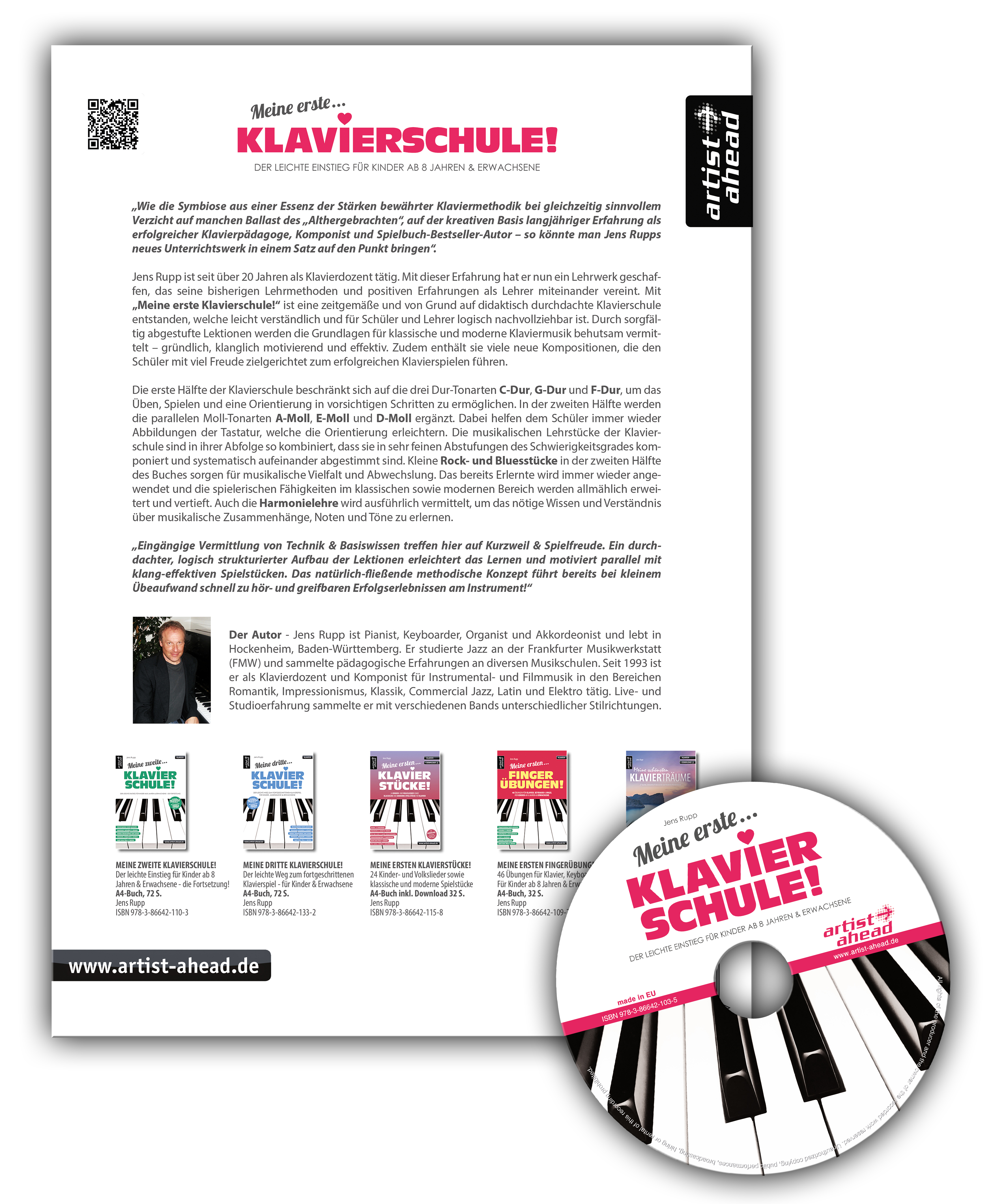 Jens Rupp ist seit 30 Jahren als Klavierdozent tätig. Mit dieser Erfahrung hat er nun ein Lehrwerk geschaffen, das seine bisherigen Lehrmethoden und positiven Erfahrungen als Lehrer miteinander vereint. Mit "Meine erste Klavierschule!" ist eine zeitgemäße und von Grund auf didaktisch durchdachte Klavierschule entstanden, welche leicht verständlich und für Schüler und Lehrer logisch nachvollziehbar ist. Durch sorgfältig abgestufte Lektionen werden die Grundlagen für klassische und moderne Klaviermusik behutsam vermittelt: gründlich, klanglich motivierend und effektiv. Zudem enthält sie viele neue Kompositionen, die den Schüler mit viel Freude zielgerichtet zum erfolgreichen Klavierspielen führen.