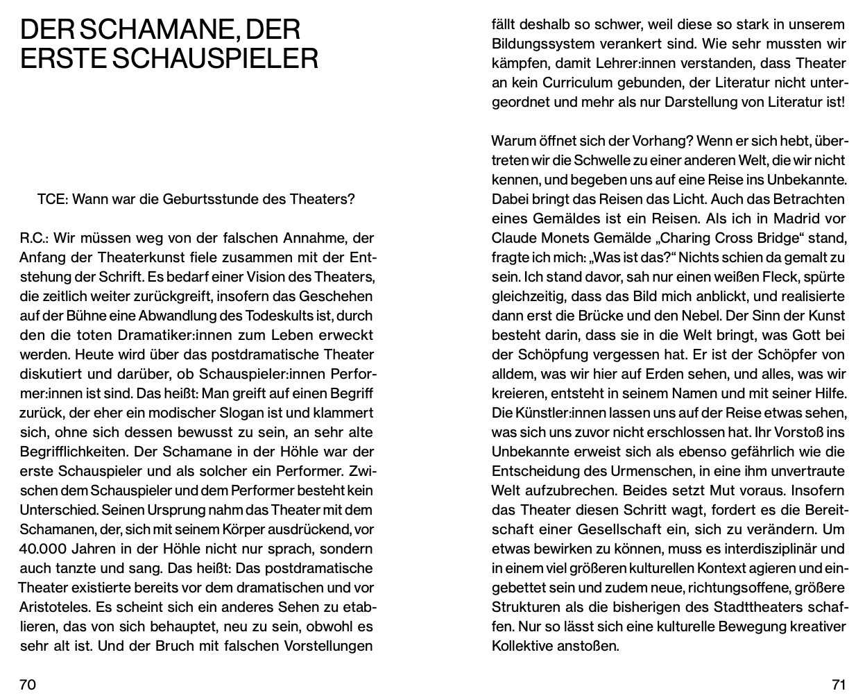 The Collective Eye sprach mit dem Ausnahmeregisseur über seinen anthropologischen Blick auf das Theatermachen, ein neues und freies Verständnis von Autor*innenschaft, Sprache und den kollektiven Wunsch nach Verständigung und Utopien einer anderen Gesellschaft, die sich im Theaterspiel darbieten. Weitere Ausgaben der Buchreihe sind erschienen mit Elmgreen & Dragset sowie Slavs and Tatars.