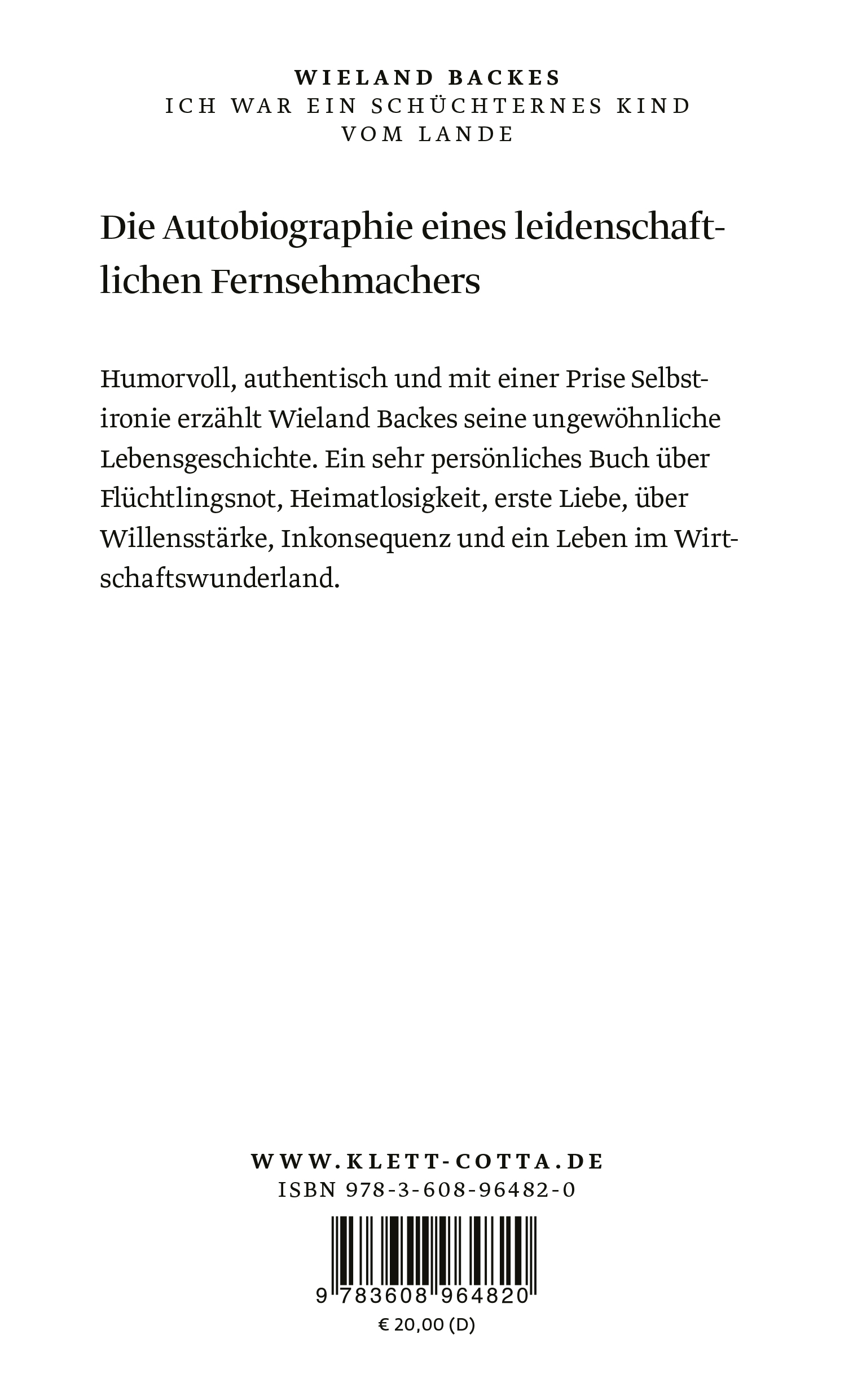 Humorvoll, authentisch und mit einer Prise Selbstironie erzählt Wieland Backes seine ungewöhnliche Lebensgeschichte und seinen außergewöhnlichen Weg im Fernsehen. Ein sehr persönliches Buch über Flüchtlingsnot, Heimatlosigkeit, erste Liebe, über Willensstärke, Inkonsequenz und ein Leben im Wirtschaftswunderland.