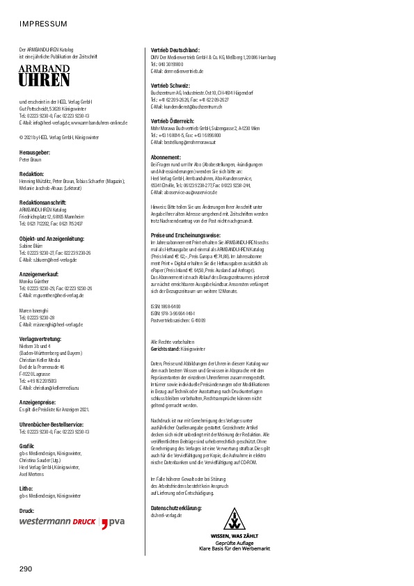 Armbanduhren Katalog 2021/2022 - Rolex, Omega, Patek, Tudor u. v. m.