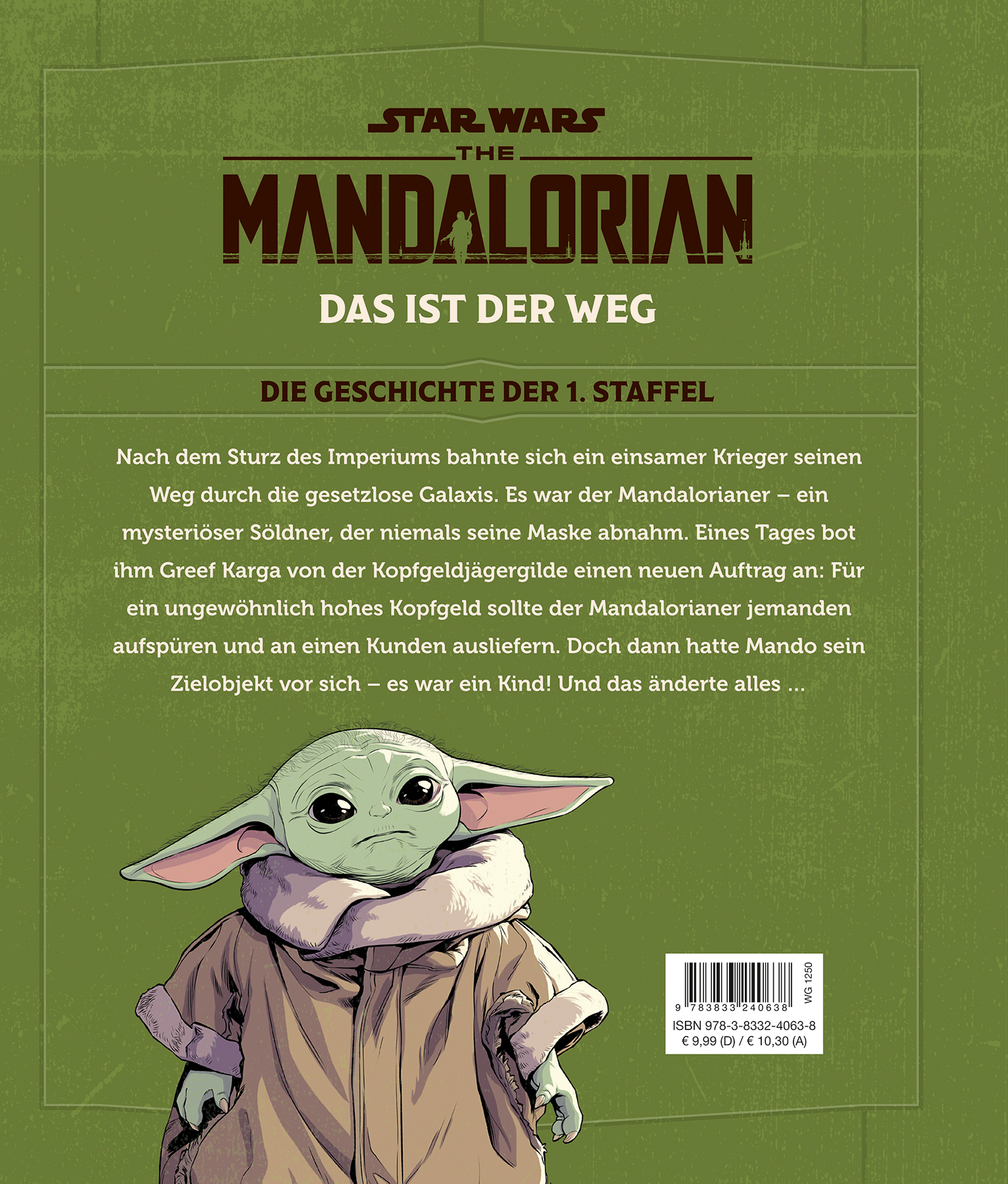 DIE GESCHICHTE DER 1. STAFFELNach dem Sturz des Imperiums bahnte sich ein einsamer Krieger seinen Weg durch die gesetzlose Galaxis. Es war der Mandalorianer - ein mysteriöser Söldner, der niemals seine Maske abnahm. Eines Tages bot ihm Greef Karga von der Kopfgeldjägergilde einen neuen Auftrag an: Für ein ungewöhnlich hohes Kopfgeld sollte der Mandalorianer jemanden aufspüren und an einen Kunden ausliefern. Doch dann hatte Mando sein Zielobjekt vor sich - es war ein Kind! Und das änderte alles ...