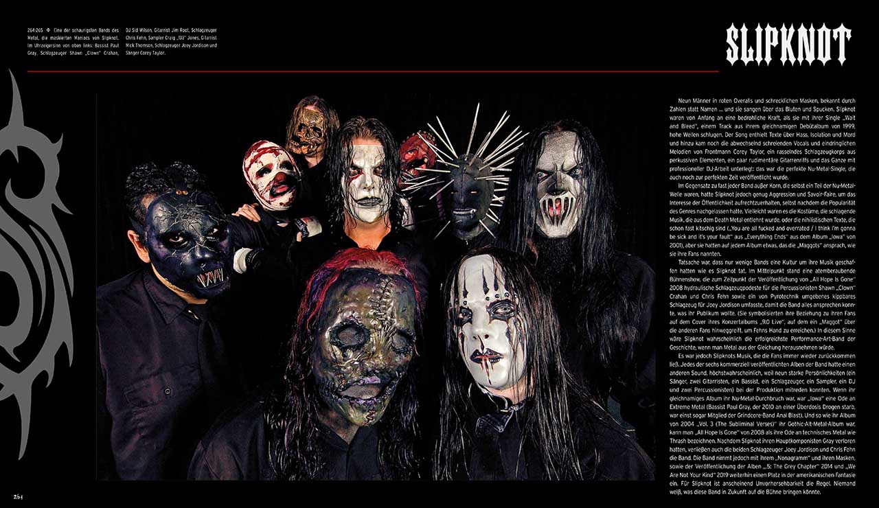 VORWORT 4EINLEITUNG 8HARD ROCKBlack Sabbath 20Deep Purple 30Led Zeppelin 38Scorpions 46Rush 52Alice Cooper 54Aerosmith 60Queen 66Van Halen 72Kiss 76AC/DC 84Rainbow 88Def Leppard 92Whitesnake 100Motley Crue 104Bon Jovi 108Poison 112Guns N'Roses 116Skid Row 120HEAVY METALOzzy Osbourne 130Judas Priest 136Iron Maiden 142Motörhead 148Saxon Seite 152Manowar 156Queensrÿche 160Dio 164Dream Theater 166THRASH METALVenom 174Metallica 178Pantera 184Anthrax 190Slayer 192Sodom 196Destruction 198Kreator 202Megadeth 206Celtic Frost 210METAL SPIELARTENBLACK METALMayhem 216Immortal 220Emperor 224DEATH METALNapalm Death 226Death 228Morbid Angel 230Cannibal Corpse 232POWER METALSavatage 236Helloween 238Iced Earth 240Blind Guardian 244ALTERNATIVE METALMinistry 246Marilyn Manson 248Tool 254Korn 258Slipknot 262STICHWORTVERZEICHNIS 270