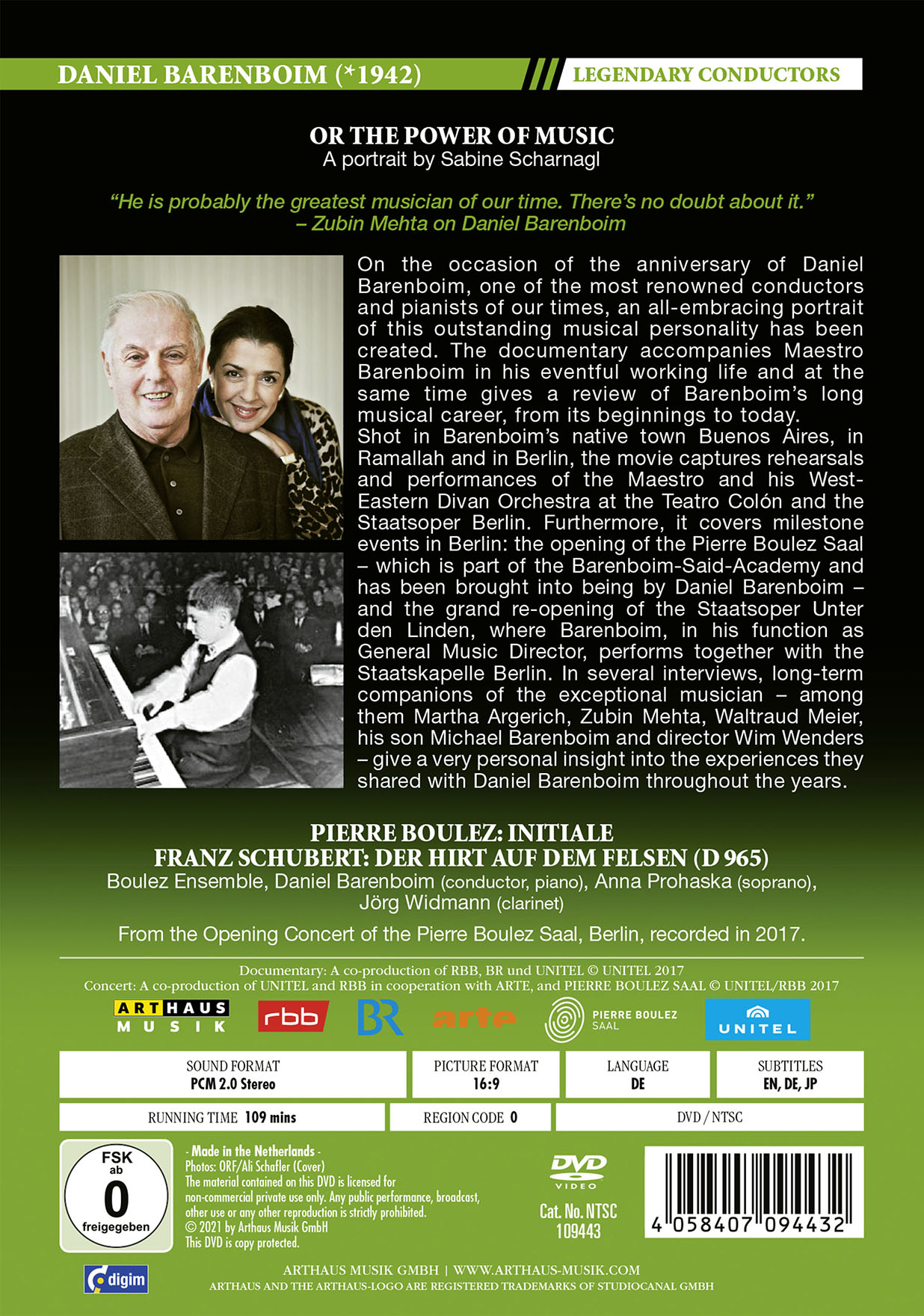 In several interviews, long-term companions of the exceptional musician - among them Martha Argerich, Zubin Mehta, Waltraud Meier, his son Michael Barenboim and director Wim Wenders - give a very personal insight into the experiences they shared with Daniel Barenboim throughout the years.