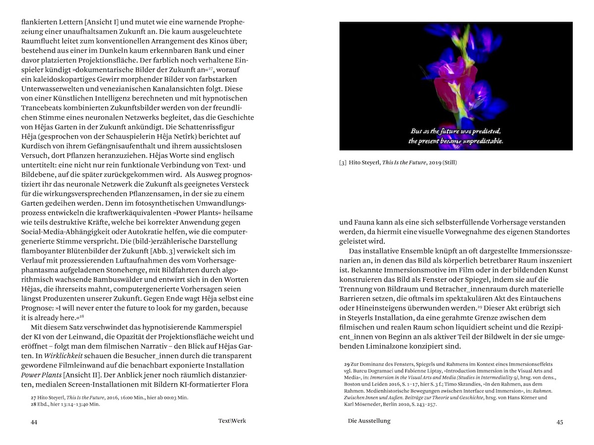 lt;p>Der Reader versammelt Beiträge zu den künstlerischen und akademisch-essayistischen Arbeiten der renommierten Medienkünstlerin, Regisseurin und Autorin Hito Steyerl (*1966). Welche Reflexe hinterlässt Steyerls Schreibpraxis in ihren Filmen und Videos? Wie wirken diese in ihre Texte und Ausstellungspraktiken zurück? Der interdisziplinäre Sammelband liefert die erste Analyse zu diesem Aspekt in Steyerls Schaffen und beinhaltet ein Interview mit der Künstlerin. Anlass bildete eine Kooperation zwischen dem DFG-Graduiertenkolleg »Das Dokumentarische. Exzess und Entzug« an der Ruhr-Universität Bochum und der Kunstsammlung Nordrhein-Westfalen, wo 2020/21 die erste Retrospektive Hito Steyerls stattfand.