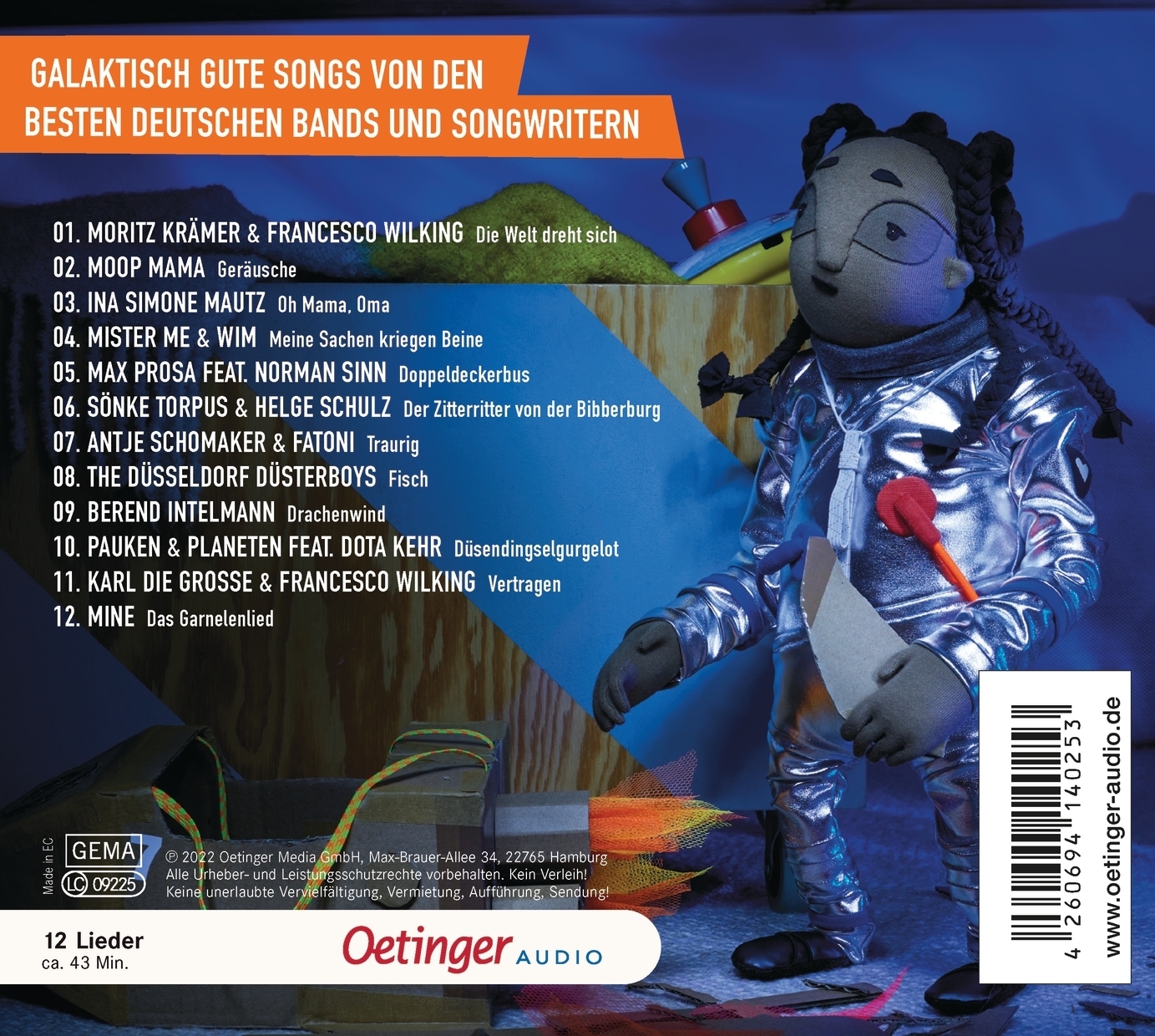 | Schlagworte | Cool • Deutschsprachige Künstler • Familie • Indie-Pop • Indie-Rock • Jungen • Kinderalltag • Kinderbuch ab 4 • Kindergartenlieder • Kinderlieder • Kindermusik • Kinderparty • Lieder • Mädchen • Mitsingen • Modern • moderne Kinderlieder • Musik • Popmusik • Rock • Singen • Singer-Songwriter • Tanzen • Unter meinem Bett |
