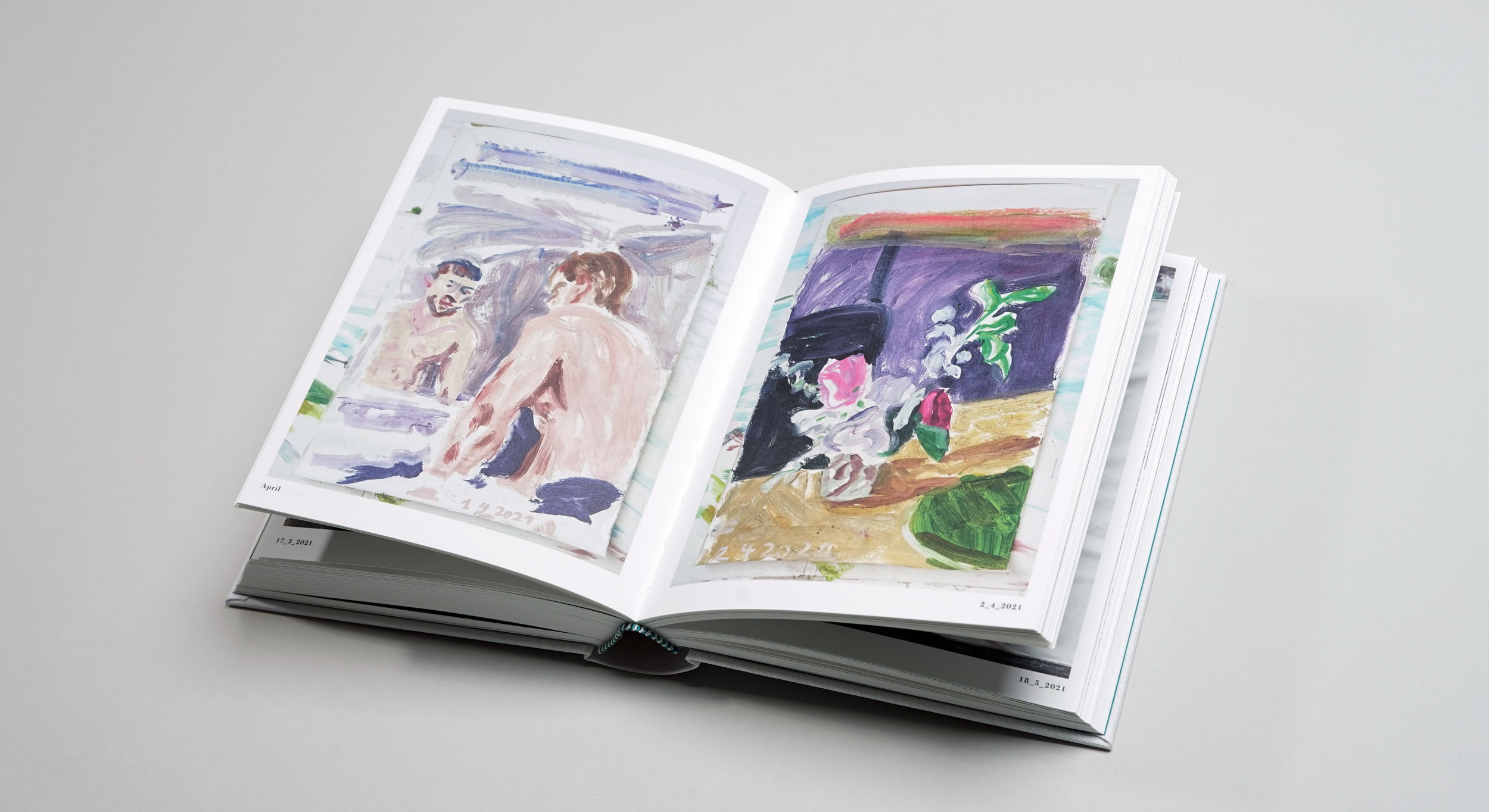TAG UM TAGEin Jahr lang, von August 2020 bis August 2021, hat Dietmar Lutz (geb. 1968 in Ellwangen, lebt und arbeitet in Düsseldorf) jeden Tag ein Bild gemalt oder eine Zeichnung gemacht, in denen Momente seines Alltags zu sehen sind. Alle 365 Arbeiten sind in chronologischer Reihenfolge entweder direkt oder auf Fotografien im Umfeld ihrer Entstehung abgebildet. Sie lassen das Jahr aus einer radikal subjektiven Perspektive Revue passieren. Die Gemälde halten Erinnerungen fest, sind aber jeweils aus einer bestimmten Situation heraus entstanden, ohne dieser zwangsläufig Ereignishaftigkeit zuzuschreiben. Der Künstler beobachtet sich selbst in seiner Welt und definiert seine Rolle in ihr. Das Malen als tägliche Aufgabe scheint die Zeit zu strukturieren, nicht umgekehrt. Jedes Bild erschließt einen neuen Raum, in dem die unterschiedlichen Facetten der Zeit sinnlich erfahrbar werden.Dietmar Lutz studierte an der Kunstakademie Düsseldorf und ist für seine großformatigen Gemälde bekannt, in denen er Alltagssituationen beschreibt und Referenzen zur Film- und Literaturgeschichte kreiert. Lutz ist Mitbegründer des deutsch-britischen Künstlerkollektivs hobbypopMuseum, mit dem er unter anderem auf der 1. Athen Biennale, bei Deitch Projects in New York und in der Tate Britain in London ausgestellt hat.