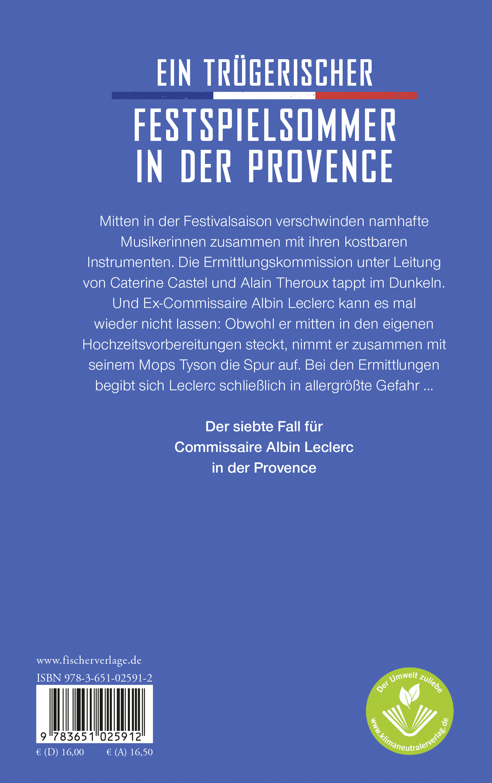 | Schlagworte | Aix-en-Provence • Albin Leclerc • Avignon • Carpentras • Commissaire • Commissaire Albin Leclerc • Festspielsommer • Frankreich • Frankreich Krimi • Geschenk für Männer • Hund • Krimi • Krimi-Serie • Lagrange • Leclerc • Mops Tyson • Musiker • Orange • Orchester • Pierre Lagrange • Provence • Provence-Alpes-Côte d'Azur • Provence-Alpes-Côte d’Azur • provence krimi • Urlaub • Urlaubskrimi • Wein |
