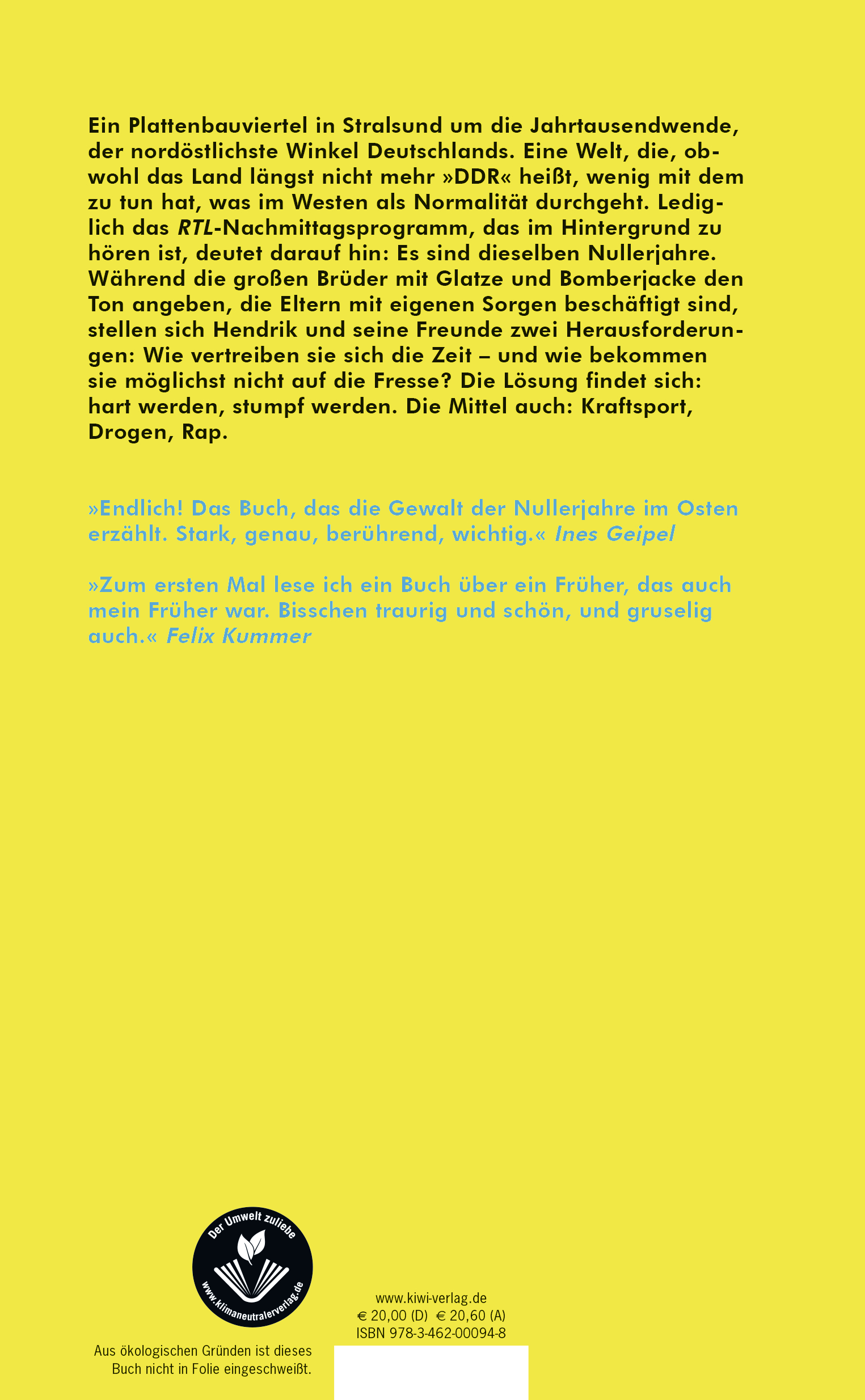 Während in den Plattenbauten von Knieper West immer mehr Erwachsene die Suche nach einem Platz im neuen System aufgeben, nehmen Hendrik und seine Freunde die Herausforderung an: Sie finden Auswege aus der Langeweile und Fluchtwege, um keine Prügel zu kassieren. Langsam zerfallen die Frontlinien der Baseballschlägerjahre, an die Stelle der Springerstiefel treten Turnschuhe, die Böhsen Onkelz werden von Aggro Berlin abgelöst, die Optionen bleiben die gleichen: Fressen oder Gefressenwerden.