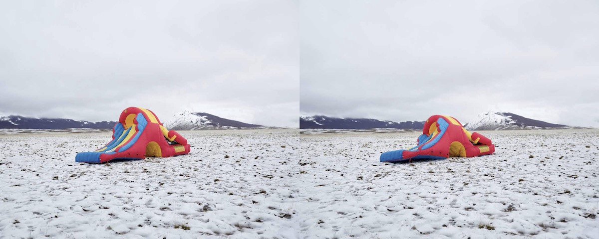 lt;p>The ground is covered in snow, the horizon a dark line of mountains; low milky clouds hide the sky. In the foreground, a shapeless form, a strange sagging mass of bright colors-red, blue and yellow-stirs as it fills with air. In less than a minute a popular fairground attraction appears: an inflatable, rotund form, awkward and genial, shaped like a double slide or a springboard, the kind often seen in children's play areas, at fairs and village gatherings. Along with other inflatables in the same vein-a chubby castle complete with dragon, a football pitch-the slide is part of the bizarre landscape conjured up in Stefano Cerio's Aquila, a series of photographs taken in Abruzzo at different times of year and in highly impactful settings not far from L' Aquila, on the plains of Campo Felice, Campo Imperatore and Pescasseroli.