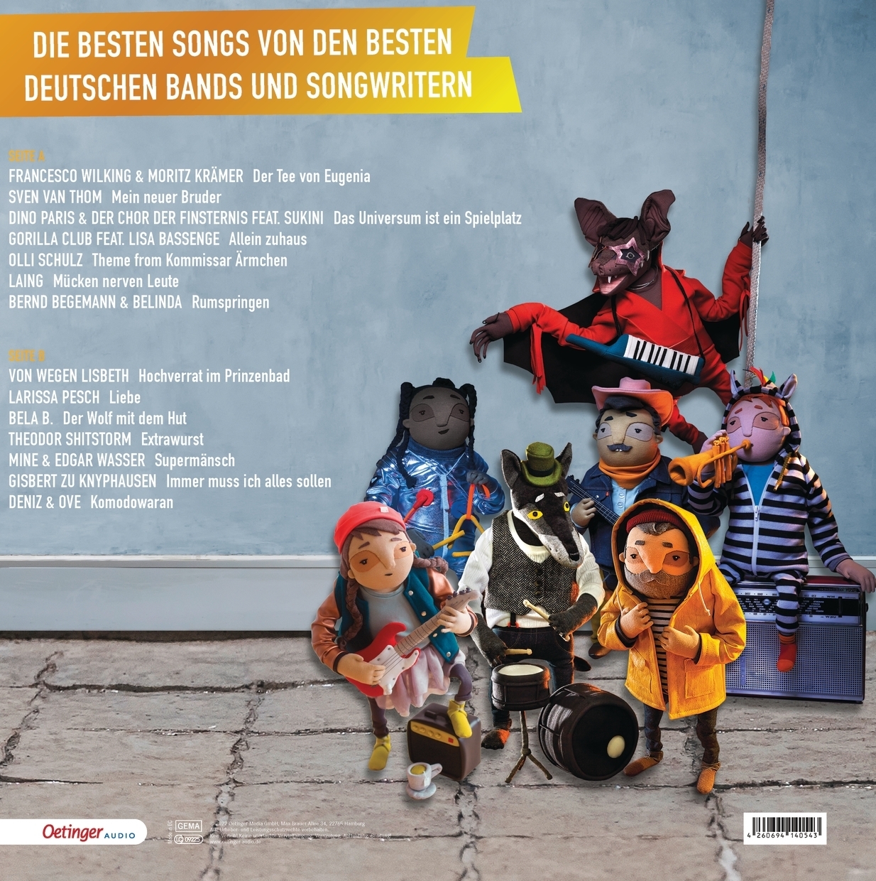 Produzent: Francesco Wilking, Chris von Rautenkranz Solist (Gesang): Bela B, Francesco Wilking, Moritz Krämer, Olli Schulz, Gisbert zu Knyphausen, Deniz & Ove, Sven van Thom, Dino Paris, Sukini, Gorilla Club, Lisa Bassenge, Laing, Bernd Begemann, Belinda, Von wegen Lisbeth, Larissa Pesch, Theodor Shitstorm, MINE, Edgar Wasser Cover Design: Julia Wenzel, Henning Heide |