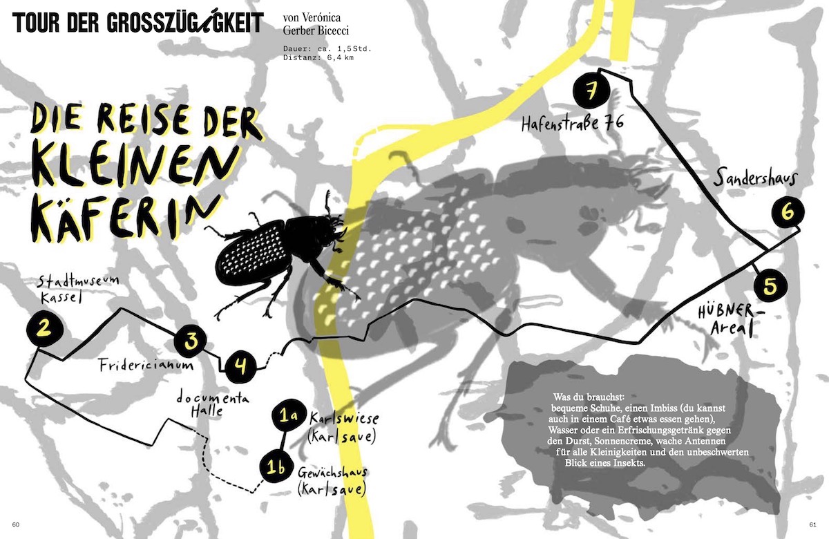lt;p>Inspiriert von Touren in Reiseführern oder Vermittlungsangeboten in öffentlichen Museen bietet Gehen, Finden, Teilen Kindern und Familien, aber auch Comic-Fans und erfahrenen Ausstellungsbesucher*innen alternative Perspektiven auf die documenta fifteen. Acht internationale Illustrator*innen und Autor*innen haben hier ruangrupas Universum für die documenta fifteen neu erfunden und regen mit ihren Bildwelten die Vorstellungskraft der Leser*innen und Besucher*innen an. Fünf Rundgänge laden zum Erleben der lumbung-Werte Humor, lokale Verankerung, Unabhängigkeit, Großzügigkeit und Transparenz ein und bieten ergänzende Ideen und Aspekte zur Ausstellung. Mit unterhaltsamen Geschichten regt Gehen, Finden, Teilen dazu an, einen eigenen Zugang zu diesen Werten zu finden, daher ist jeder Weg als Vorschlag zu verstehen und kann spontan, vollständig oder auch nur in Teilen erkundet werden. Mit diesem originellen Buch werden auch jüngere Besucher*innen angesprochen und inspiriert.