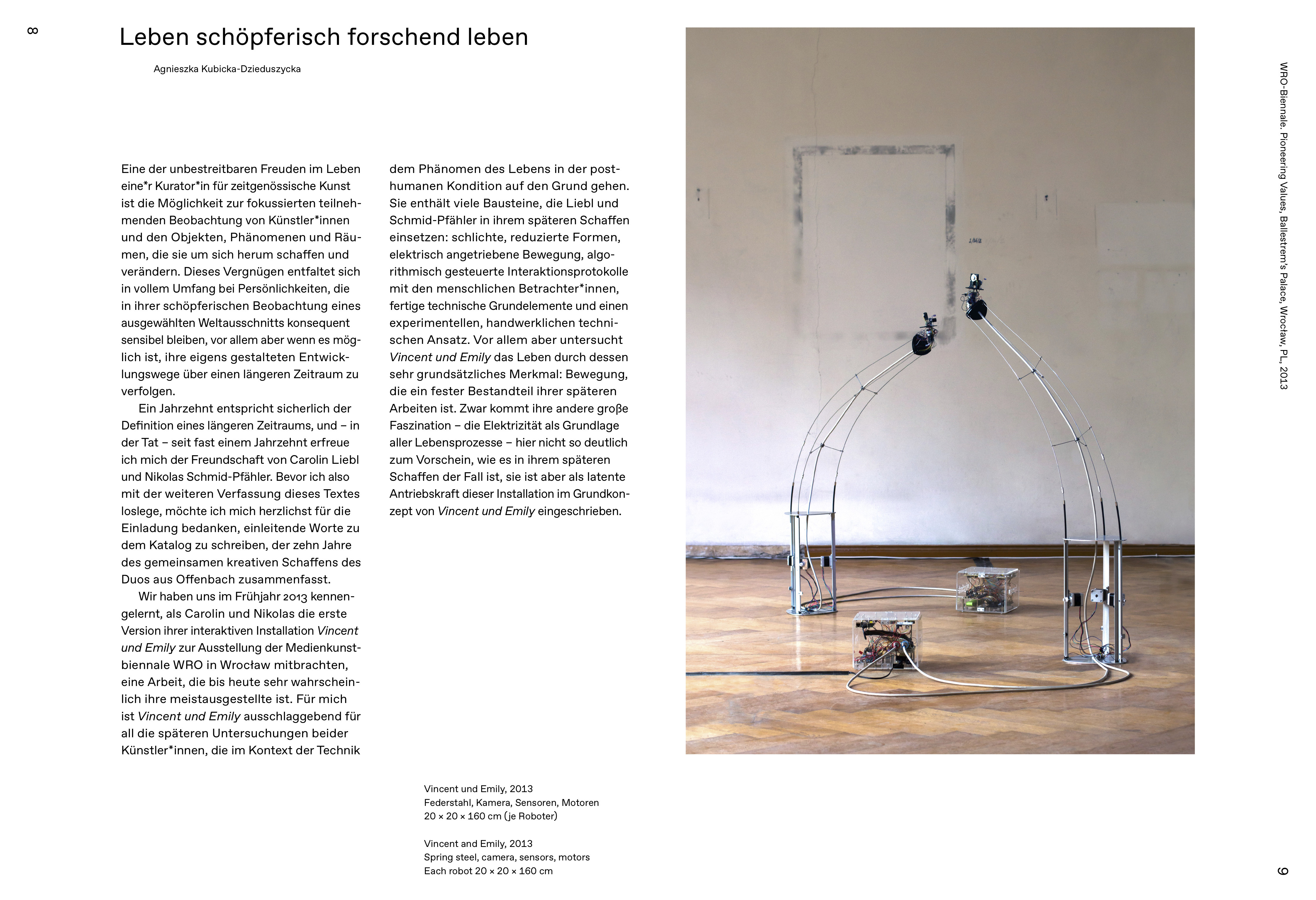 Die Publikation hello world erscheint anlässlich der zehnjährigen Zusammenarbeit der beiden Künstler*innen und zeigt einen umfangreichen Querschnitt durch das Werk des Duos. Mit einer Einführung von Agnieszka Kubicka-Dzieduszycka, Kuratorin am WRO Art Center in Wroclaw, und Textbeiträgen des Autors und Künstlers Thomas Georg Blank sowie der Kuratorin und Autorin im Bereich digitale Kunst Lucia Longhi.