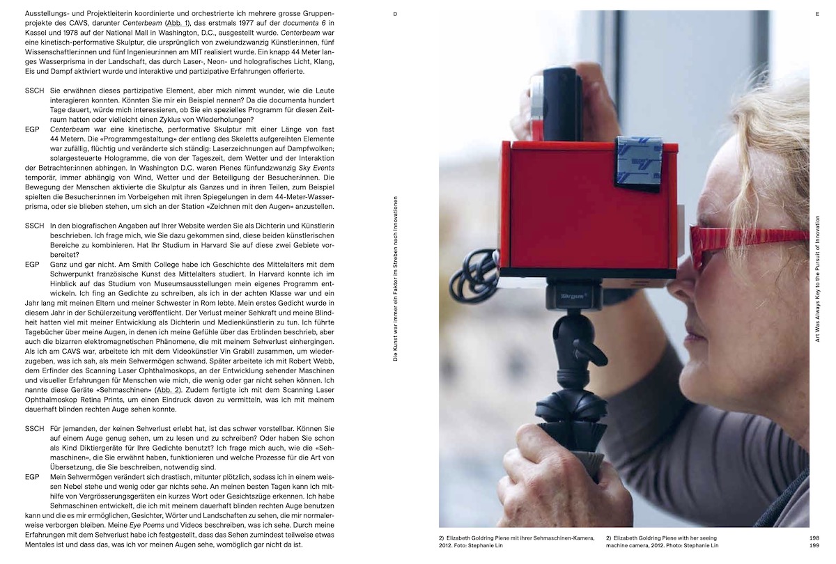 Die Reihe eindrücklicher Gespräche mit den Künstler*innen Etel Adnan, Claudia Comte, Elisabeth Goldring-Piene, Brigitte Kowanz, Alicja Kwade, Dóra Maurer, Amalia Pica, Tomás Saraceno sowie eingehende Beiträge zu Imi Knoebel und William Kentridge sind von zahlreichen bisher unveröffentlichten Ausstellungsansichten begleitet. Viele der hier neu kontextualisierten Gespräche wurden bislang nicht publiziert - alle Beiträge machen vor allem sichtbar, wie eine präzise kuratorische Praxis in der Gegenwartskunst möglich ist.