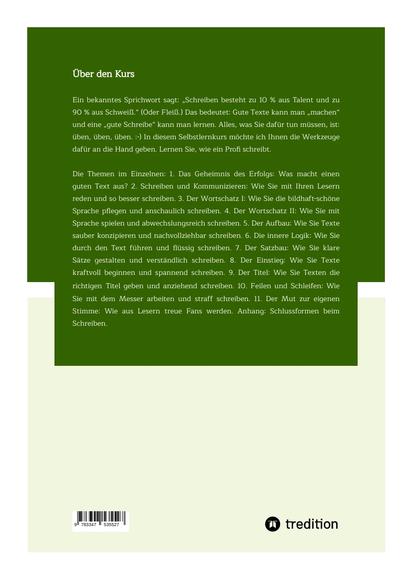 | Schlagworte | autorin werden • Autor werden • Besser schreiben • besser schreiben lernen • Buch • Buchautorin werden • Buchautor werden • buch schreiben lernen • Coaching • coaching schreiben lernen • eBook • E-Book • gut schreiben • gut schreiben lernen • Hilfe • hilfe schreiben lernen • Kurs • kurs schreiben lernen • professioneller schreiben • professioneller schreiben lernen • Professionell Schreiben • professionell schreiben lernen • Ratgeber • ratgeber schreiben lernen • Richtig schreiben • richtig schreiben lernen • Schreibbuch • Schreibcoaching • Schreiben • schreiben können • Schreiben lernen • schreiben online lernen • Schreibhandwerk • Schreibhilfe • Schreibkurs • Schreibratgeber • Schreibseminar • Schreibwerkzeug • Schreibworkshop • Schriftstellerin werden • Schriftsteller werden • Selbstlernkurs • selbstlernkurs schreiben lernen • Seminar • seminar schreiben lernen • wie kann ich besser schreiben • wie kann ich besser schreiben lernen • wie kann ich gut schreiben • wie kann ich gut schreiben lernen • wie kann ich professioneller schreiben • wie kann ich professionell schreiben • wie kann ich schreiben lernen • wie lerne ich schreiben • Wie werde ich Autor • wie werde ich Autorin • wie werde ich Buchautor • wie werde ich Buchautorin • Wie werde ich Schriftsteller • wie werde ich Schriftstellerin • Workshop • workshop schreiben lernen |
