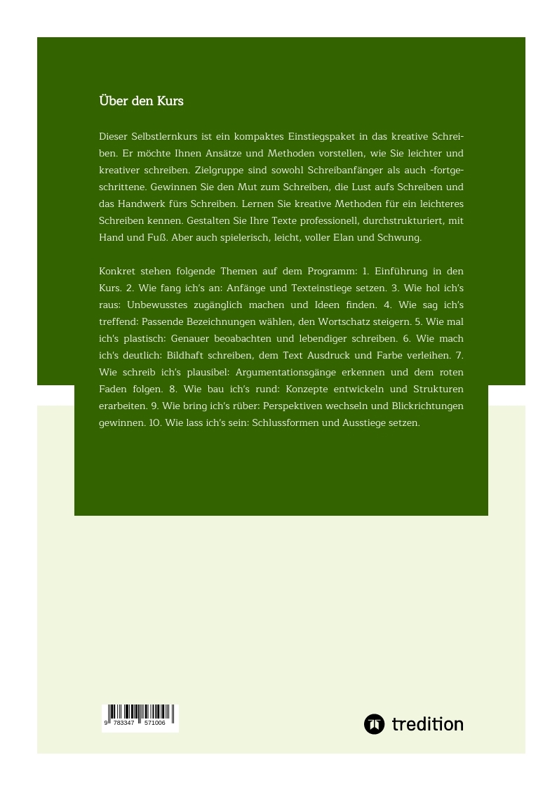 | Schlagworte | angst beim schreiben • ängste beim schreiben • ängste vor dem schreiben • Angst vor dem Schreiben • Besser schreiben • besser schreiben lernen • Buch • Coaching • eBook • E-Book • einfacher schreiben • einfach schreiben • gut schreiben • gut schreiben lernen • Hilfe • Ins schreiben kommen • Kreativ • kreativer • kreativer schreiben • kreative Schreibmethode • kreative schreibmethode lernen • kreative Schreibmethoden • kreative Schreibmethoden kennenlernen • kreative Schreibmethoden lernen • kreative Schreibtechnik • kreative Schreibtechniken • kreative Schreibtechniken kennenlernen • kreative Schreibtechniken lernen • kreative schreibtechnik lernen • Kreatives Schreiben • kreatives Schreiben lernen • Kreativ Schreiben • kreativ schreiben lernen • Kurs • leichter schreiben • leicht schreiben • Mit dem Schreiben anfangen • mit dem Schreiben beginnen • online schreiben lernen • Ratgeber • Richtig schreiben • richtig schreiben lernen • Schreibanfänger • Schreibanfängerin • Schreibangst • Schreibängste • Schreibblockade • Schreibblockaden • Schreibbuch • Schreibcoaching • Schreiben • schreiben können • Schreiben lernen • schreiben lernen online • schreiben online lernen • Schreibhandwerk • Schreibhilfe • Schreibkurs • Schreibratgeber • Schreibseminar • Schreibwerkzeug • schreibwiderstand • schreibwiderstände • Schreibworkshop • Selbstlernkurs • Seminar • spielerisch schreiben • wie fange ich an zu schreiben • wie kann ich besser schreiben • wie kann ich einfacher schreiben • wie kann ich einfach schreiben • wie kann ich ins schreiben kommen • wie kann ich kreativer schreiben • wie kann ich kreative schreibmethoden lernen • wie kann ich kreative schreibtechniken lernen • wie kann ich kreatives schreiben lernen • wie kann ich kreativ schreiben • wie kann ich leichter schreiben • wie kann ich leicht schreiben • wie kann ich mit dem schreiben anfangen • wie kann ich mit dem Schreiben beginnen • wie kann ich schreiben lernen • wie komme ich ins Schreiben • Workshop |