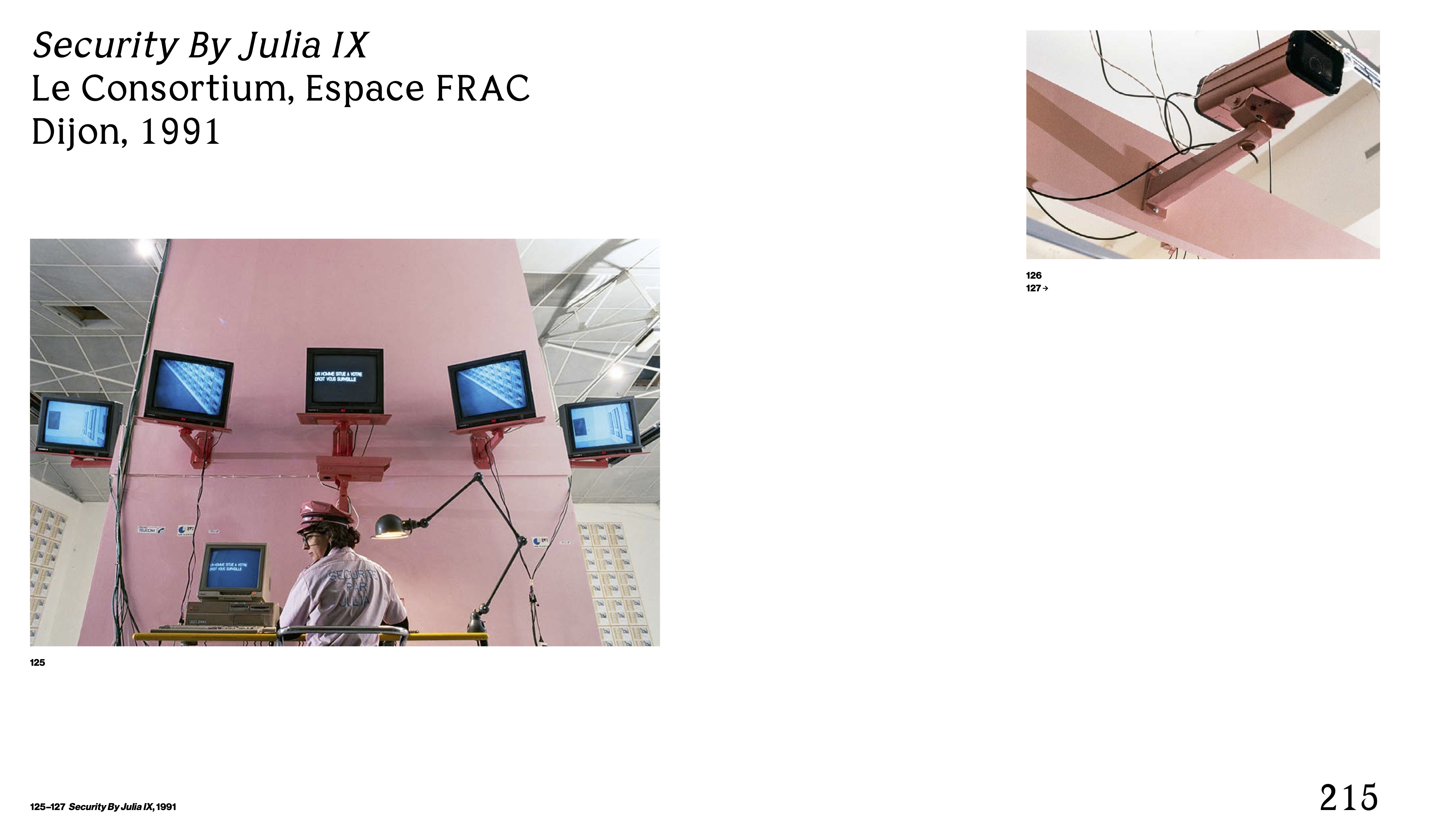 Since the 1980s, Julia Scher (b. Hollywood, 1954; lives and works in Cologne) has been investigating the emergence of a "maximum security society." Inspired by French philosopher Michel Foucault and sociologist Gary T. Marx, among others, her oeuvre focuses on issues of surveillance and the cyberspace. Since the beginning of her career, Scher has employed a visionary variety of media to demonstrate how much technologies like video surveillance, image recognition, and automated database queries have become ubiquitous and effectively structure our reality. By mimicking common surveillance scenarios, Scher's works invoke promises of increased security and convenience in order to expose the dangers and ideologies of surveillance systems. Scher creates striking and transient web, installation, and performance works that present viewers with urgent questions about power, gender, control, and medial seduction.