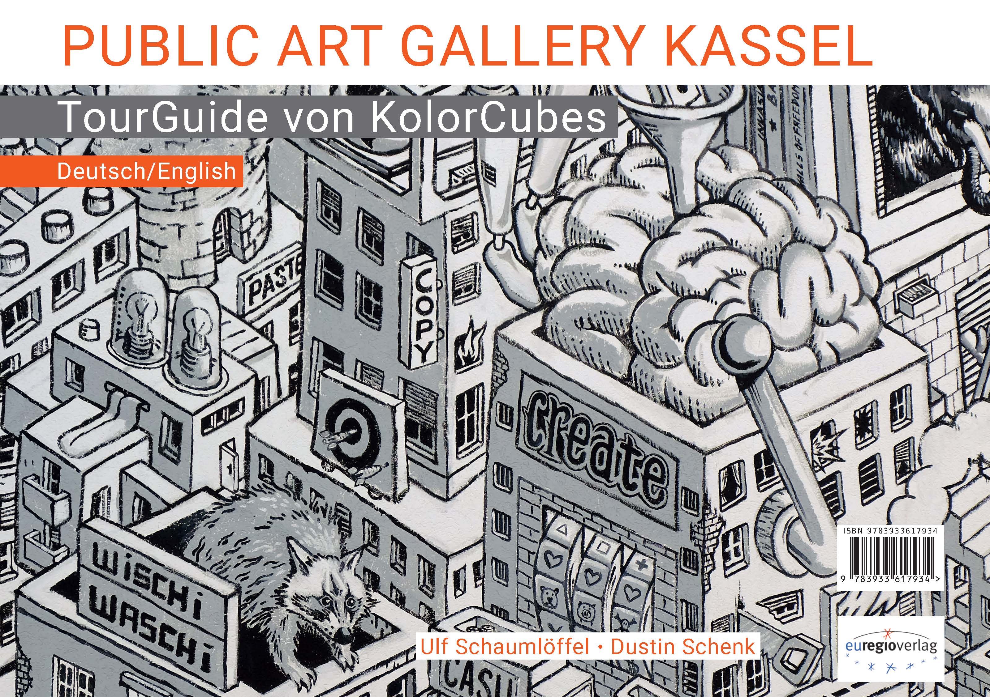 Auf Deutsch und Englisch angeleitet, können die Besucher*innen anhand von drei Graffiti Touren die Innenstadt, das Schillerviertel und Rothenditmold erkunden. QR-Codes zu den Künstler*innen der Urban Art Culture erleichtern das Auffinden der Werke. Die künstlerische Leitung der documenta fifteen, das Kollektiv ruangrupa, beauftragte KolorCubes 2020 mit der Umsetzung ihrer Corporate Identity am ruru-Haus in der Kasseler Treppenstraße/Ecke Obere Königsstraße. Mit diesem Kunstwerk beginnt die Entdeckungstour durch Kassels City. Weiter geht’s ins Schillerviertel. Es hat sich von einem industriell geprägten Quartier mit Brennpunkt-Image zu einem Ort mit Potenzial für kunstkulturelle Prozesse gewandelt. Hier ist das Atelier „Workspace“ von KolorCubes und hier sind auch die meisten Murals entstanden. Denn: Um eine Galerie im öffentlichen Raum in diesen Dimensionen betreiben zu können, braucht es Lagerfläche, Werkstatt und genügend Platz für kreative Ideen. Das Aktionsgebiet Rothenditmold ist die dritte Graffiti-Tour im Buch.