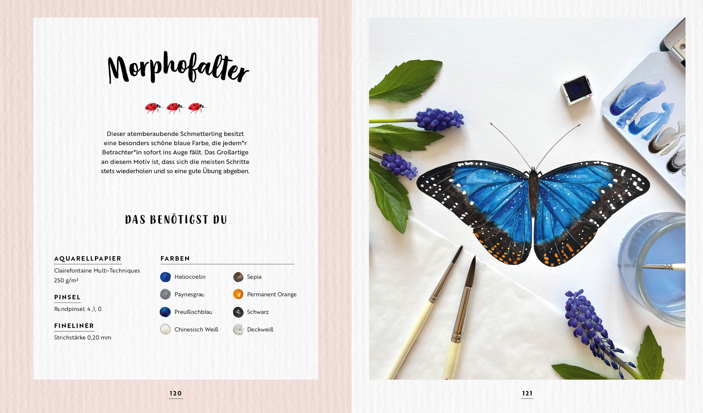 Wunderbare Kreaturen aus Wald und Wiese mit Watercolor malen: Das klappt mit diesem Anleitungsbuch ganz einfach. Schritt für Schritt gelangt man zu farbenfrohen Schmetterlingen, Käfern, Pilzen und vielen anderen Wald- und Wiesenbewohnern.