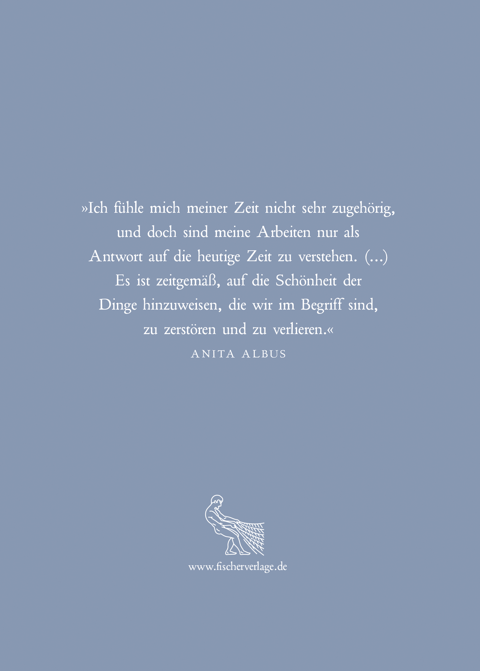 Anita Albus, geboren 1942, lebte als Malerin und Schriftstellerin in München. Berühmt wurde sie vor allem durch ihre augentäuschenden Naturdarstellungen, die vielfach ausgestellt wurden. Zugleich mit der Malerei hat sich Anita Albus der Literatur gewidmet, einen Roman und Erzählungen geschrieben und Essays verfasst. Ausgezeichnet wurde sie u.a. mit dem Bayerischen Maximiliansorden für Wissenschaft und Kunst (2014) und dem Johann-Heinrich-Merck-Preis für literarische Kritik und Essay (2004). Bei S. FISCHER erschienen u.a. die Bücher »Von seltenen Vögeln« (2005), »Das botanische Schauspiel« (2007), »Im Licht der Finsternis. Über Proust« (2011), »Sonnenfalter und Mondmotten« (2019) und »Affentheater« (2022). Anita Albus verstarb im Oktober 2024 in München. Literaturpreise:Bayerischen Maximiliansorden für Wissenschaft und Kunst (2014)Bundesverdienstkreuz für ihre Verdienste als Repräsentantin der deutschen Kultur in Frankreich (2011)Friedrich-Märker-Preis für Essayistik (2002)Johann-Heinrich-Merck-Preis für literarische Kritik und Essay (2004)