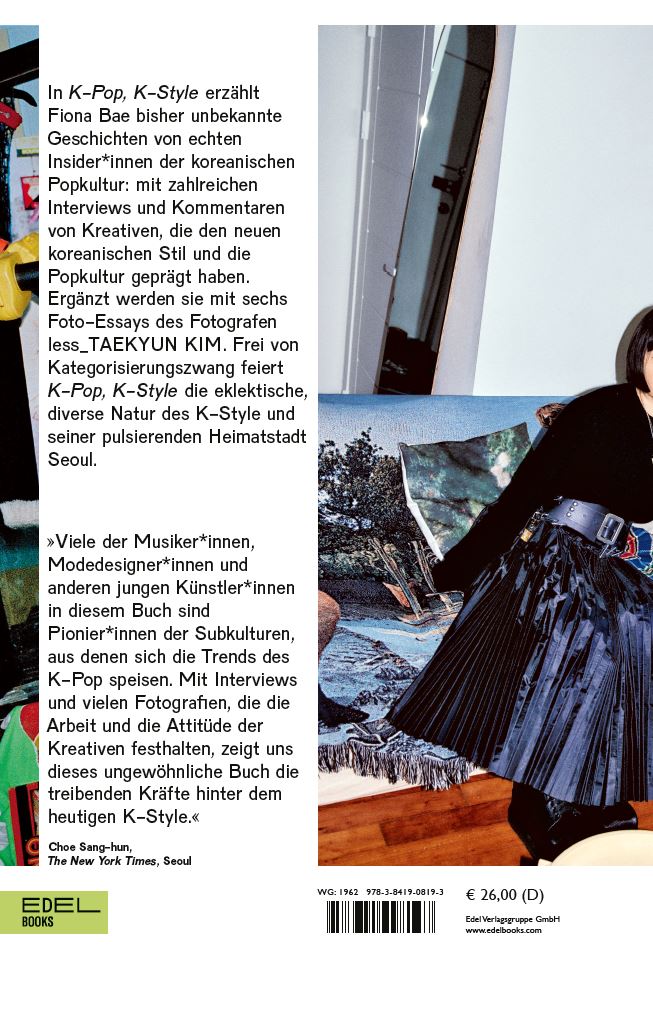 Autorin Fiona Bae erzählt anhand der Geschichten von 15 Persönlichkeiten, die den K-Style in den verschiedensten kreativen Bereichen prägen, was diese Bewegung ausmacht und warum sie sich nur in Seoul zu ihrer vollen Blüte entfalten konnte. Mit Einblicken in das Leben von Lia Kim vom Tanzstudio 1 Million, K-Pop-Stylisten Youngjin Kim und Drag Pioneer Nana Youngrong Kim u. v. a.