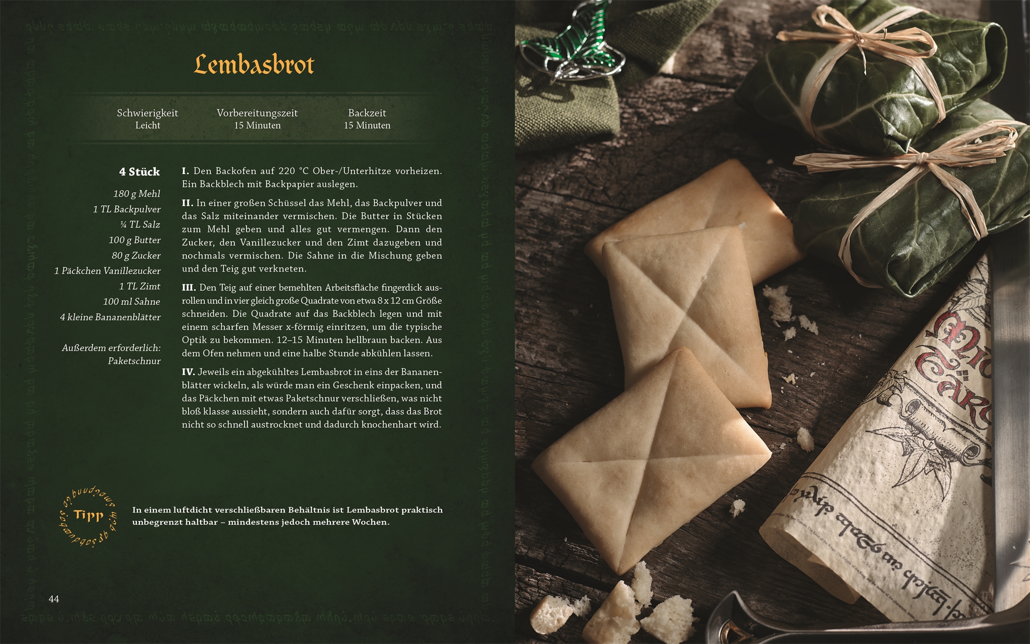 Der Herr der Ringe begeistert Fans seit Jahrzehnten. In seinen Romanen legte J. R. R. Tolkien unter anderem viel Wert auf die Beschreibung der Essgewohnheiten seiner Figuren. Was läge da näher als ein Kochbuch mit 60 Speisen und Getränken für alle Fans der Fantasy-Saga? Dieses Buch holt die Gerichte aller Regionen von Mittelerde in die heimische Küche. Wie wäre es zum Beispiel mit elbischem Wegebrot Lembas, Meerbarbe in Weinblättern nach Art der Númenór oder Kricklocher Apfelkuchen?