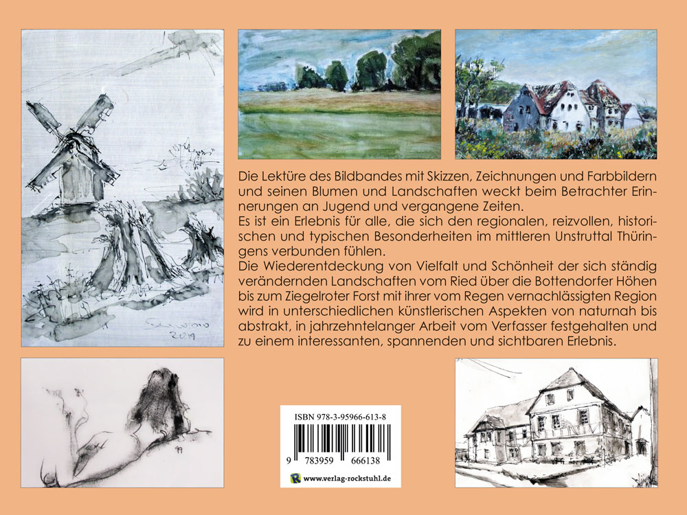 Autor Dieter Jumtow, Festeinband, (HxB) 17 x 24 cm, 140 Seiten mit 155 AbbildungenÜBER DAS BUCH:Die Lektüre des Bildbandes mit Skizzen, Zeichnungen und Farbbildern und seinen Blumen und Landschaften weckt beim Betrachter Erinnerungen an Jugend und vergangene Zeiten.Es ist ein Erlebnis für alle, die sich den regionalen, reizvollen, historischen und typischen Besonderheiten im mittleren Unstruttal Thüringens verbunden fühlen.Die Wiederentdeckung von Vielfalt und Schönheit der sich ständig verändernden Landschaften vom Ried über die Bottendorfer Höhen bis zum Ziegelroter Forst mit ihrer vom Regen vernachlässigten Region wird in unterschiedlichen künstlerischen Aspekten von naturnah bis abstrakt, in jahrzehntelanger Arbeit vom Verfasser festgehalten und zu einem interessanten, spannenden und sichtbaren Erlebnis.
