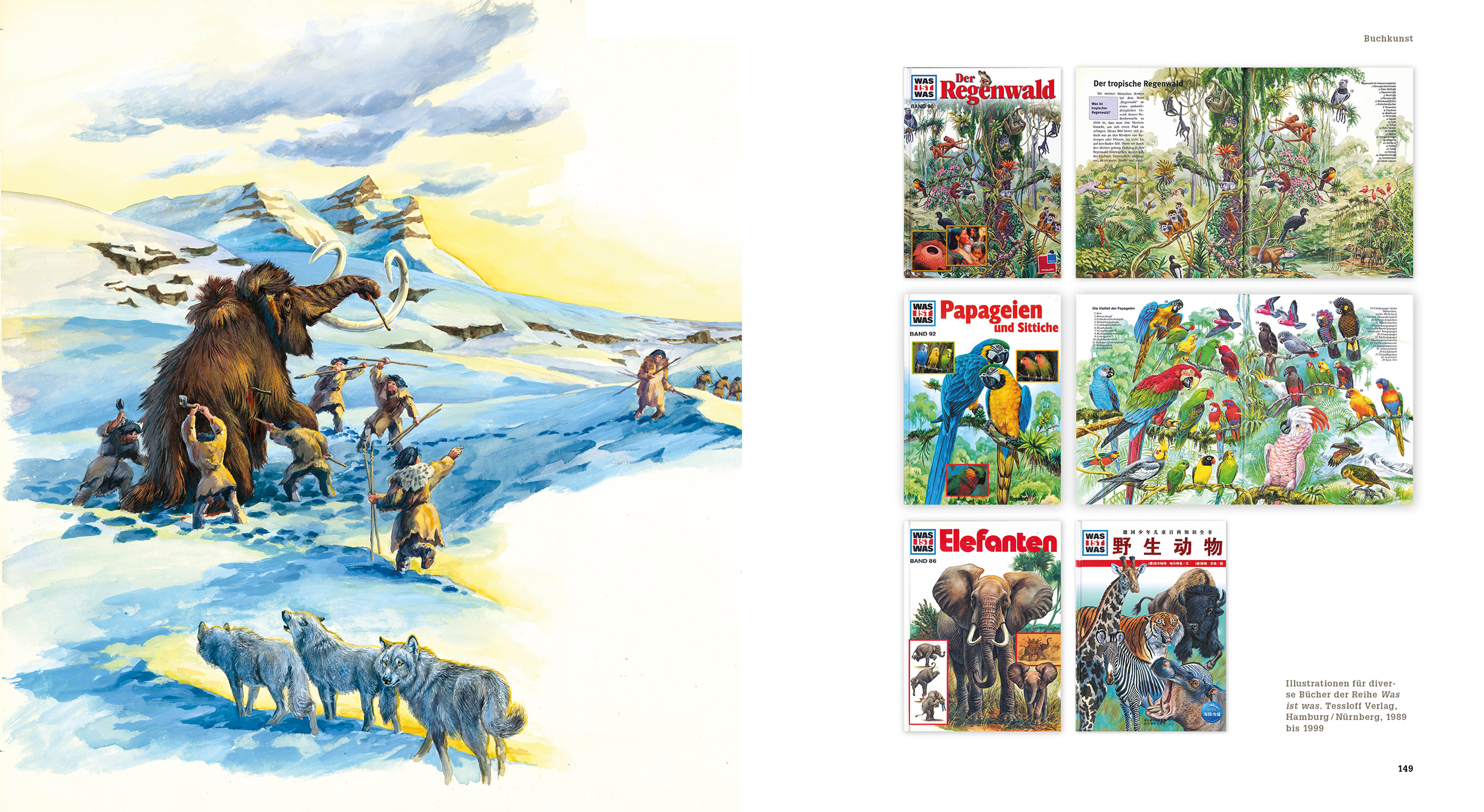 Mehr als 320 Abbildungen zeigen Aquarelle und Skizzen des Grafikers, zu dessen bevorzugten Motiven Elefanten, Menschenaffen und Tiger gehören, der aber auch in Deutschland heimische Arten mit eindrucksvoller Beobachtungsgabe und großem Einfühlungsvermögen porträtiert hat.