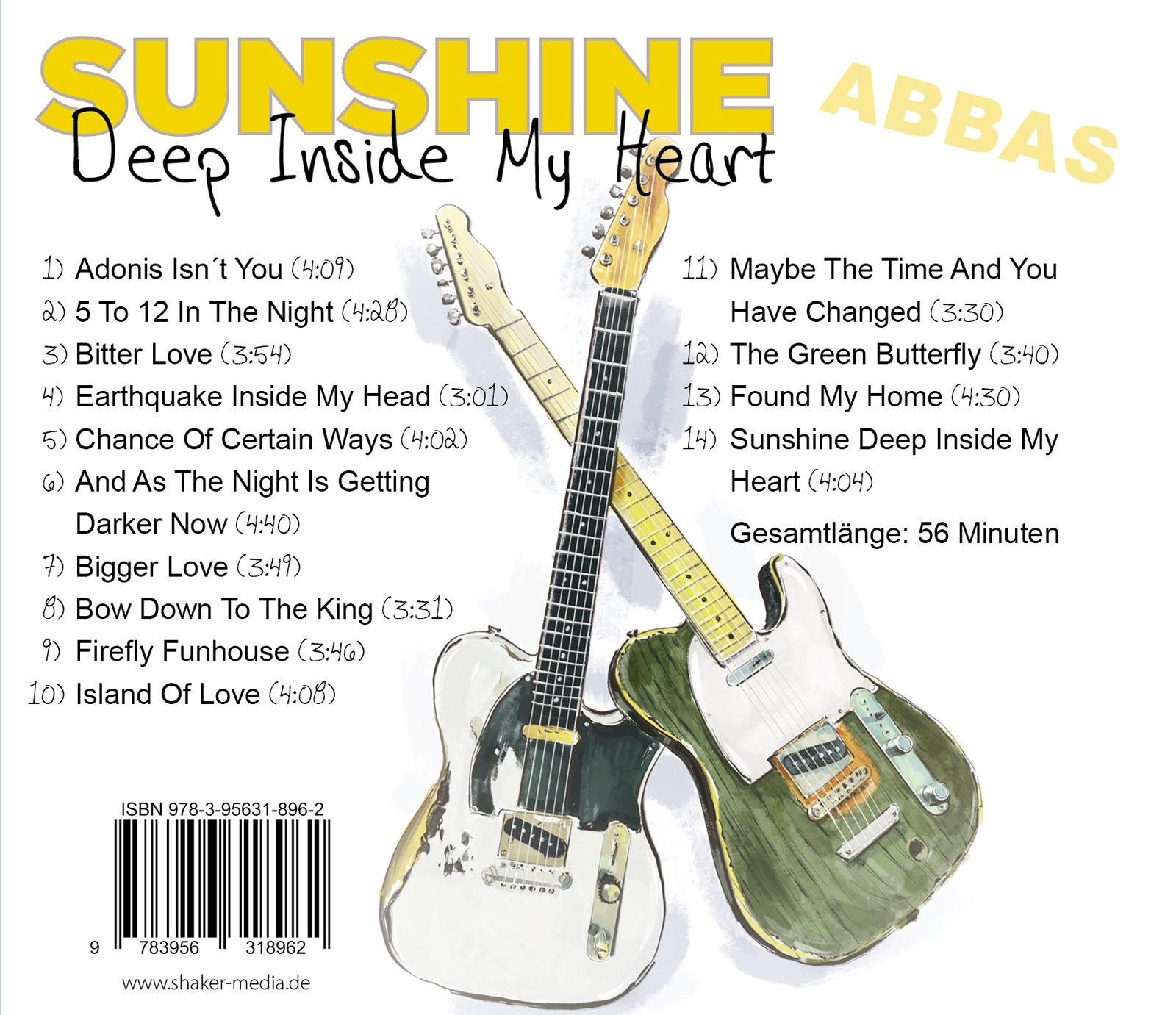 Nach 1000 komponierten Songs, 120 CDs und zahlreichen Auftragsarbeiten für namhafte Künstler veröffentlicht Abbas Schirmohammadi nun sein erstes Singer-Songwriter-Album. „Sunshine Deep Inside My Heart“ erinnert musikalisch an ABBA und Beatles, bietet catchige Melodien und Ohrwurmrefrains, dazu spannende Texte. Vom Gassenhauer „Earthquake Inside My Head“ hin zur Rockhymne „Adonis Isn´t You“, von der emotionalen Ballade „Bitter Love“ hin zum Beach-Song „Island Of Love“, vom enigmatischen „The Green Butterfly“ hin zum ultimativen Liebeslied „Found My Home“ erwarten euch 14 fantastische Songs.