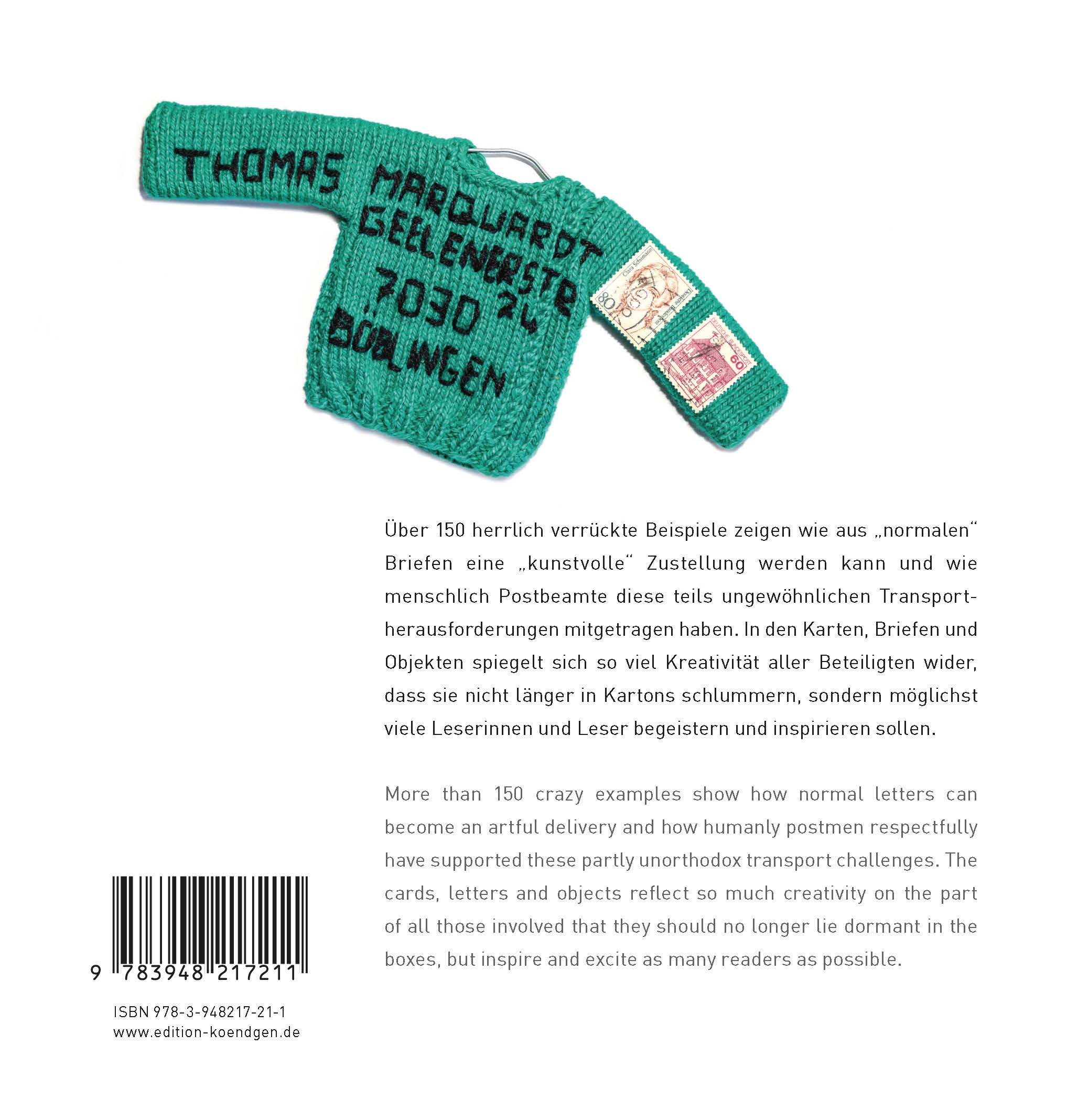 Mit Einführung des Internets, des Smartphones und damit verbunden der Messenger-Dienste sowie Social Media hat sich das Kommunikationsverhalten nicht nur der jungen Generation deutlich verändert. Festnetztelefonie und das Schreiben privater Briefe erscheinen veraltet und nicht mehr in unsere heutige Zeit zu passen. Fast schon vergessen sind die Zeiten, in denen handschriftliche Texte in einen Briefumschlag gesteckt und verschickt wurden oder überlegt wurde, wer einen kurzen Gruß mit einer Ansichtskarte aus dem Urlaub bekommen sollte. In all diesen Fällen spielte die Post eine entscheidende Rolle, ob es um einen Telefonanschluss ging oder um die Beförderung eines Briefes, einer Postkarte oder eines Pakets. Das vorliegende Buch beinhaltet eine Sammlung künstlerisch gestalteter Sendungen („Post-Kunst“, auch Mail Art genannt), die ich (der Autor), beginnend in den 1980er Jahren, verschickt oder von Freunden oder der Familie erhalten habe. Dabei handelt es sich um einfache oder komplexe Ideen, auf einer Projektionsfläche realisiert, die dann auch von der Post damals befördert worden sind. Inhaltlich handelte es sich um postalische Antworten auf eine Geburtstagseinladung, verschickte Geburtstagsgrüße oder auch um einen liebenswerten Gedankenaustausch im Rahmen einer langen Fernbeziehung. Die ca. 160 Objekte umfassende Sammlung (von mir fast vergessen) wartete bis vor kurzem darauf, aus den 2 Kartons in denen ich diese gelagert hatte, an das Tageslicht zu gelangen. Die Kreativität, die sich in den Werken widerspiegelt, sollte nicht in Vergessenheit geraten. Aus datenschutzrechtlichen Gründen sind die Absender oder Adressaten wenn notwendig anonymisiert. Die Abbildungen sind wie folgt kategorisiert: Objekte // Mitteilungen // Collagen // Briefmarke als Thema