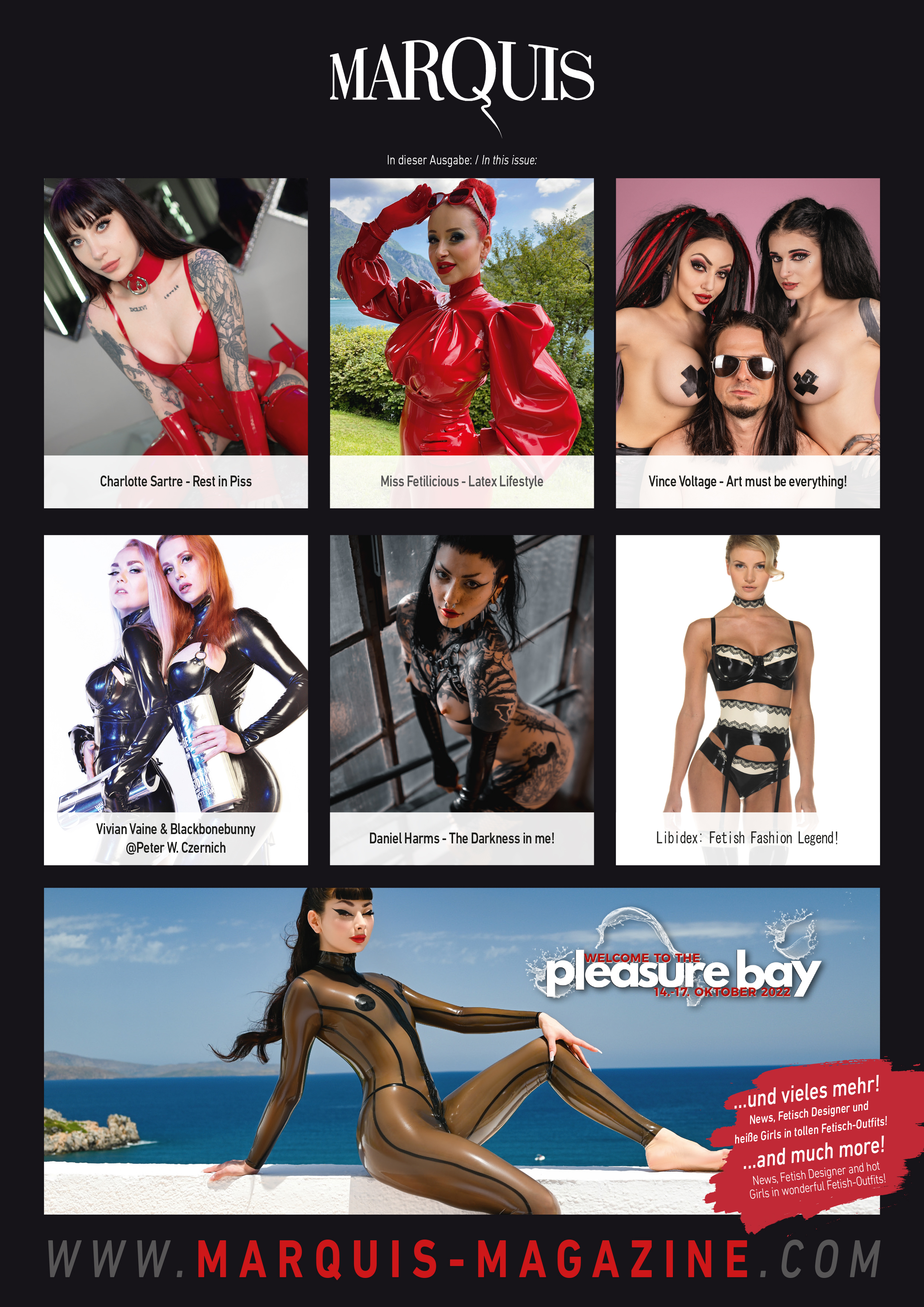 | Schlagworte | Beyla Hughes • Charlotte Sartre • Elena Vladi • Glowing Darkness • Latex • Marquis • Nina de Lianin • Peter W. Czernich • Pleasure Bay • Red Queen • Rubber • Slavena Albastová • The Agency For Strange Behaviour |
