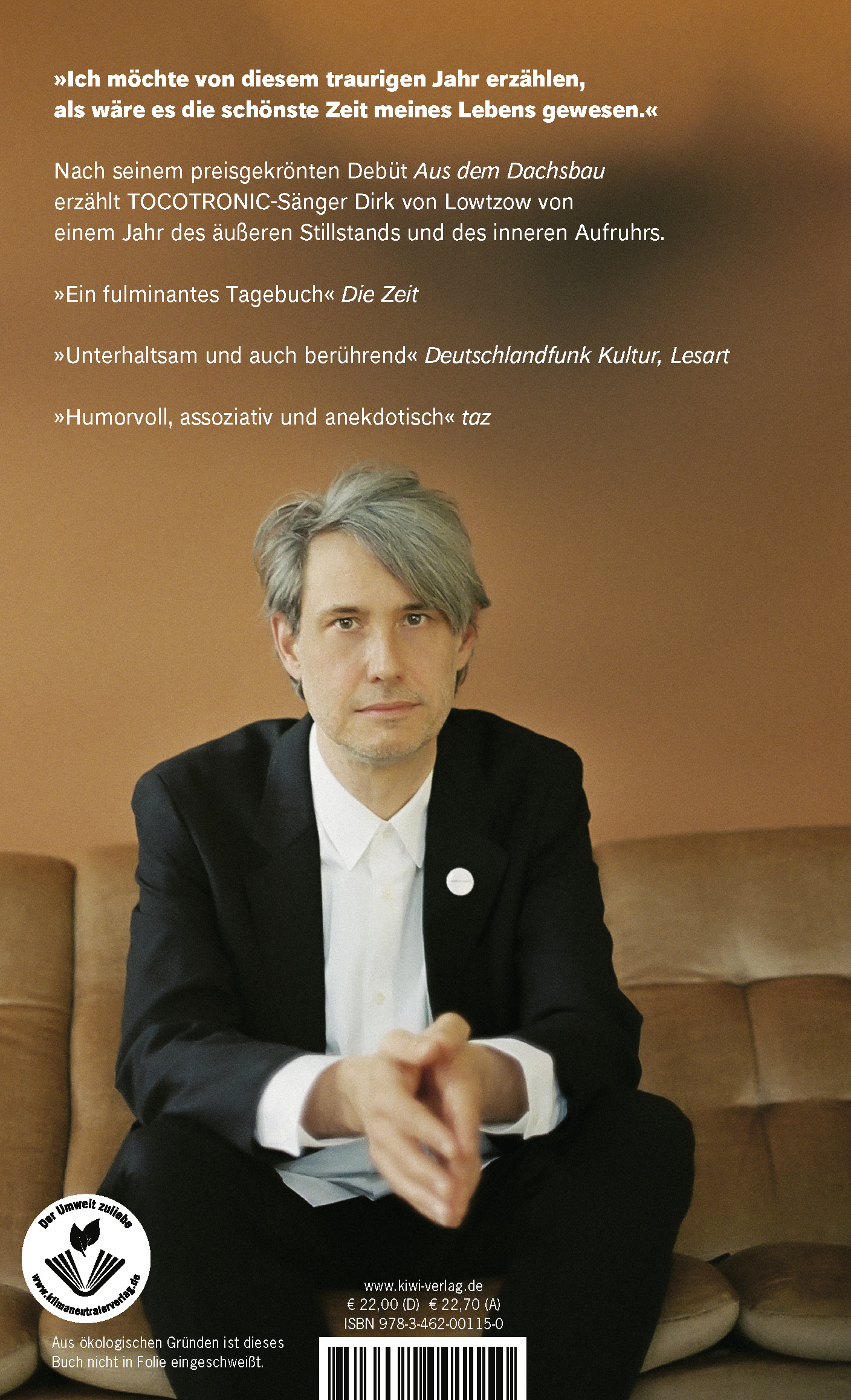 Nach seinem gefeierten Debüt »Aus dem Dachsbau«, das mit dem Literaturpreis der Landeshauptstadt Wiesbaden ausgezeichnet wurde, erzählt TOCOTRONIC-Sänger Dirk von Lowtzow von einem Jahr des äußeren Stillstands und des inneren Aufruhrs.