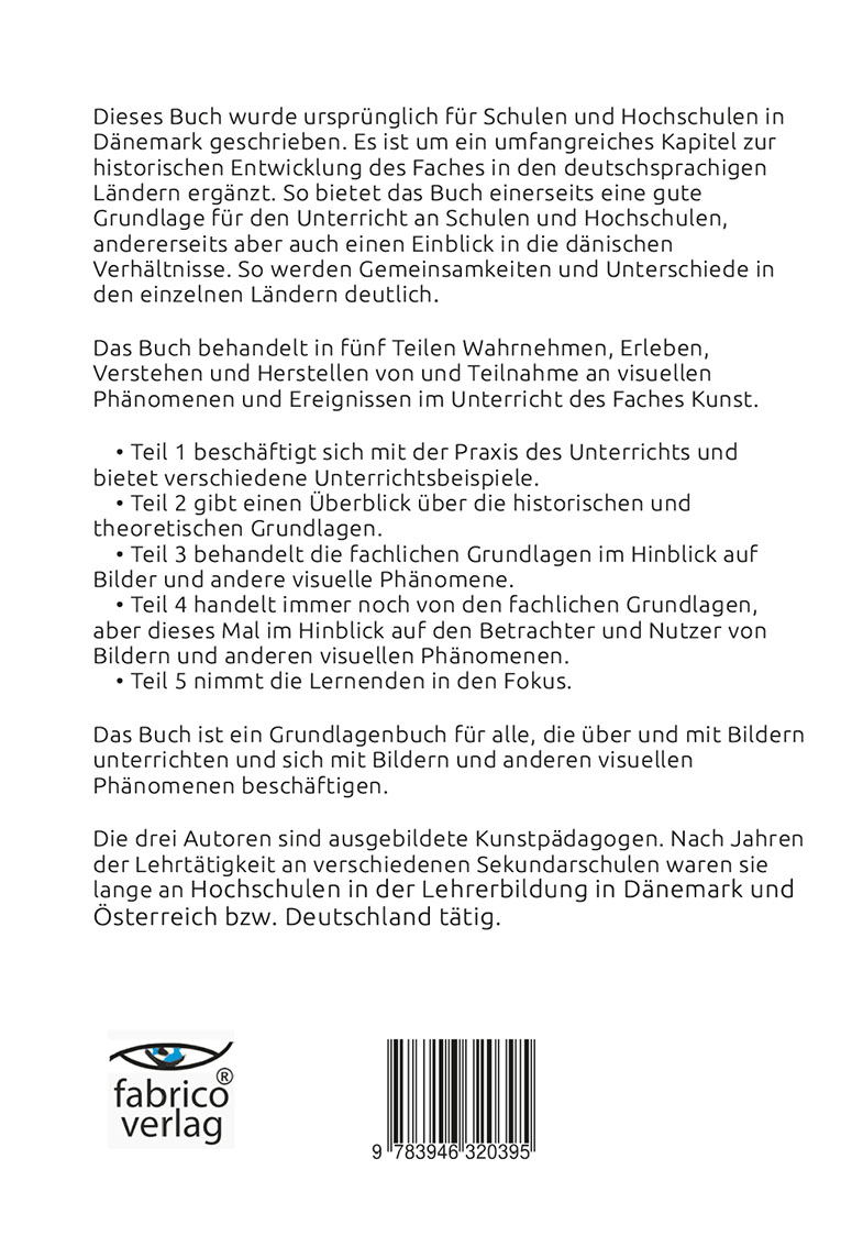 Karsten Arvedsen Lehrer und cand. paed. im Fach Billedkunst (Kunstpädagogik); 1982-1993 Lehrer an Schulen; 1993-1997 Lehrer für Kunstpädagogik an der Ubberup Hochschule; 1997-2016 Hochschullektor für Kunstpädagogik an der Professionshochschule UCC in der Lehrerausbildung. Schwerpunkte in Forschung und Entwicklung sind konzeptionell begründete Theorien zur zeitgenössischen Kunst und visuellen Kultur in einem didaktischen Kontext. Er hat eine Reihe von Artikeln und Büchern veröffentlicht sowie Beiträge zu Anthologien verfasst und herausgegeben: https://www.linkedin.com/in/karsten-arvedsen-9a5b13158/ https://karstenarvedsen.wixsite.com/my-site-1.
