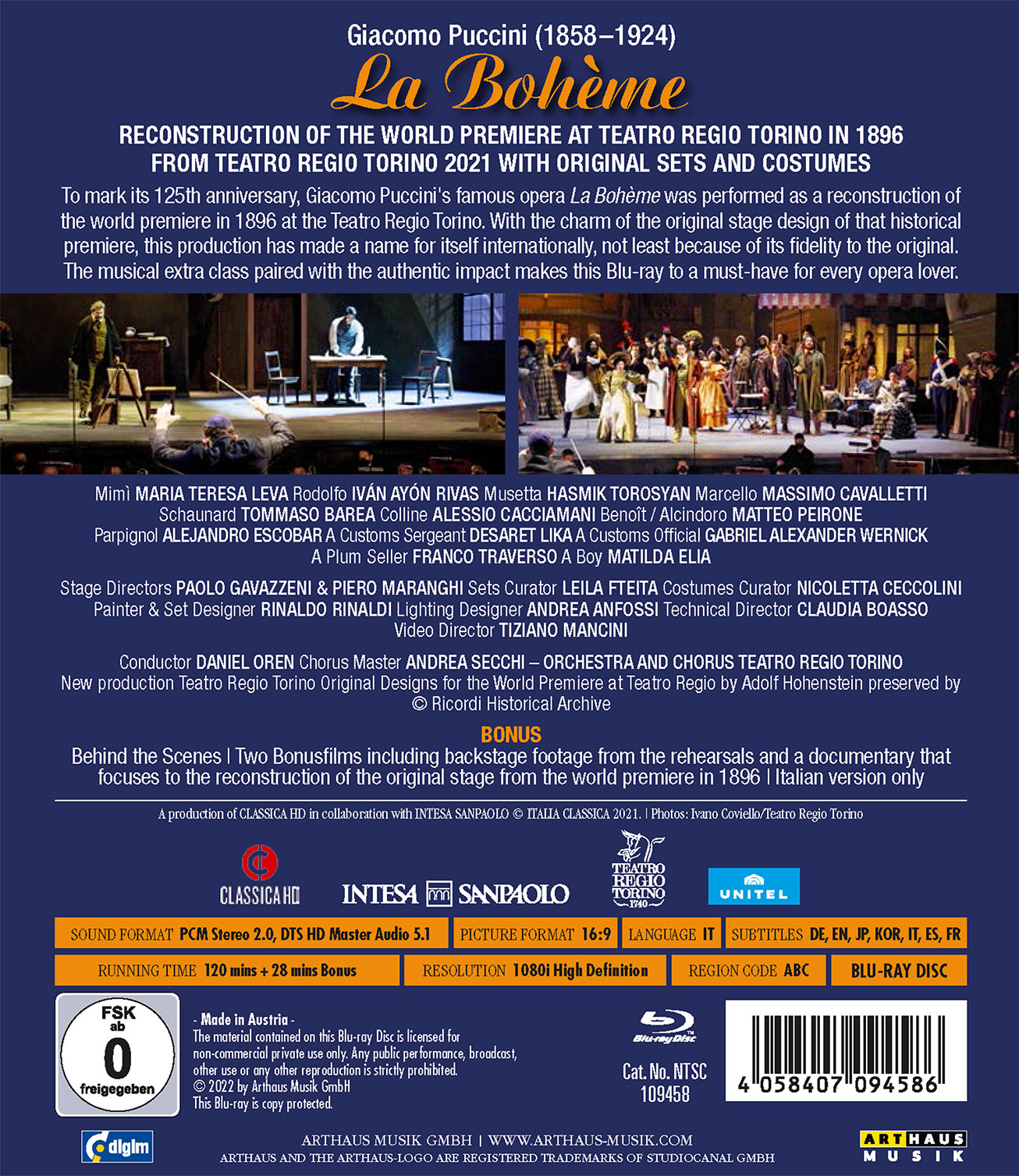 The staging, set and costumes are based on the famous original sketches made by set and costume designer Adolf Hohenstein for the premiere in 1886. Maestro Daniel Oren takes over the musical direction, Maria Teresa Leva and Iván Ayón Rivas sing the roles of Mimì and Rodolfo.
