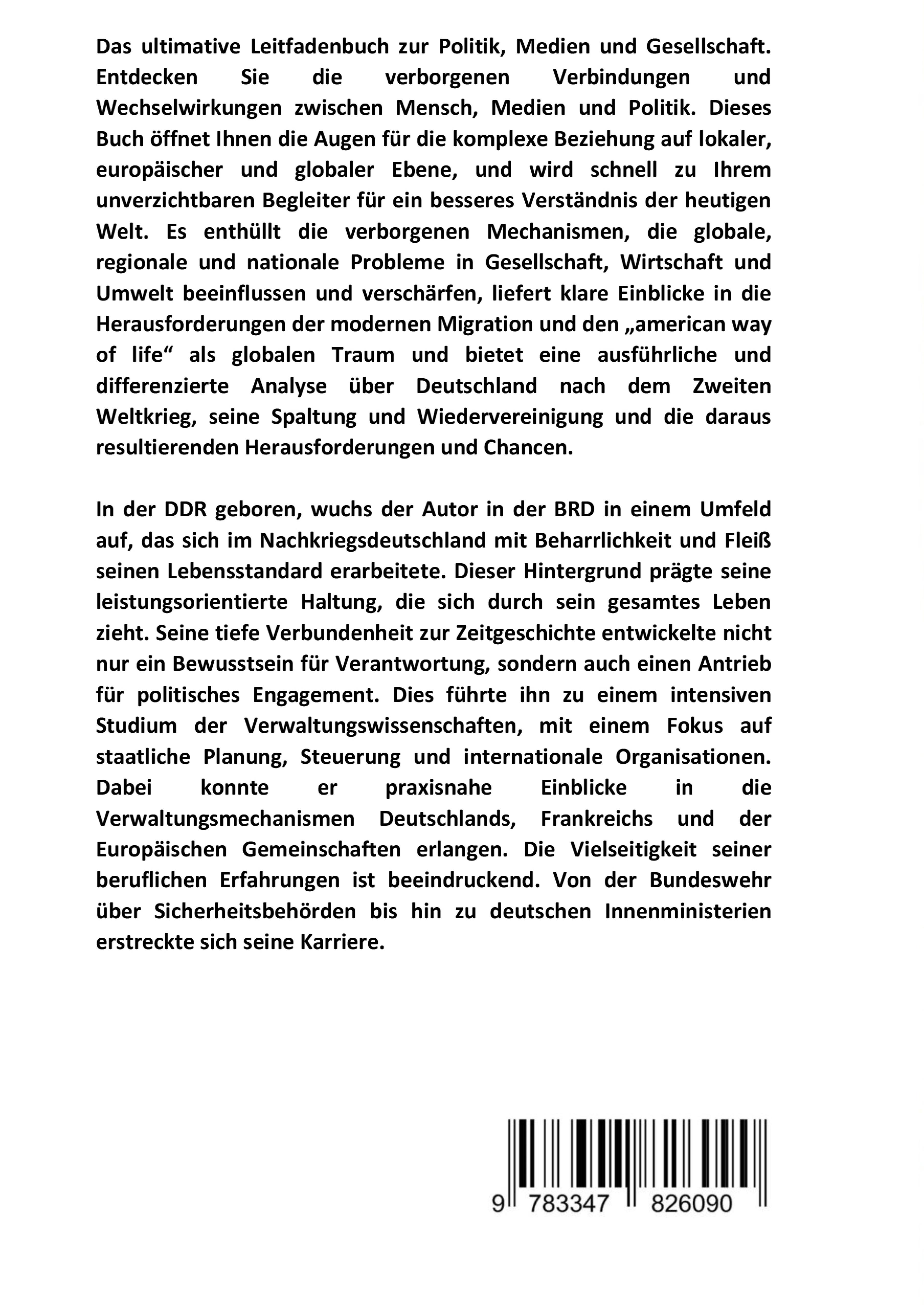 In der DDR geboren, wuchs der Autor in der BRD in einem Umfeld auf, das sich mit Beharrlichkeit und Fleiß einen neuen Lebensstandard erarbeitete. Dieser Hintergrund prägte seine leistungsorientierte Haltung, die sich durch sein gesamtes Leben zieht. Er hat sich kontinuierlich bemüht, seinen Horizont zu erweitern – durch Bildung, Engagement und Berufserfahrung. Seine tiefe Verbundenheit zur Zeitgeschichte entwickelte nicht nur ein Bewusstsein für Verantwortung, sondern auch einen Antrieb für sein politisches Engagement. Dies führte ihn zu einem intensiven Studium der Verwaltungswissenschaften, mit einem Fokus auf staatliche Planung, Steuerung und internationale Organisationen. Dabei konnte er tiefe Einblicke in die Verwaltungsmechanismen Deutschlands, Frankreichs und der Europäischen Gemeinschaften erlangen. Die Vielseitigkeit seiner beruflichen Laufbahn ist beeindruckend. Von der Bundeswehr über Sicherheitsbehörden bis hin zu deutschen Innenministerien erstreckte sich seine Karriere. Er spielte zudem eine maßgebliche Rolle beim Wiederaufbau der öffentlichen Verwaltung in den neuen Bundesländern nach der deutschen Wiedervereinigung. Parallel dazu pflegte der Autor stets eine besondere Passion: die intensive Lektüre von Zeitungen und die kritische Auseinandersetzung mit dem herrschenden Zeitgeist. Seine analytische Herangehensweise, kombiniert mit jahrzehntelanger Praxiserfahrung, macht ihn zu einem Experten, der ein tiefgehendes Verständnis für die komplexen Verflechtungen von Politik, Medien und Gesellschaft besitzt. Dieses Buch ist das Ergebnis einer Lebensreise, die von Neugier, Engagement und dem steten Drang nach Wissen geprägt war. Der Autor verbindet seine einzigartige Lebens- und Berufserfahrung, um den Lesern wertvolle Einblicke und eine umfassende Analyse des beschriebenen Themengebiets zu bieten.