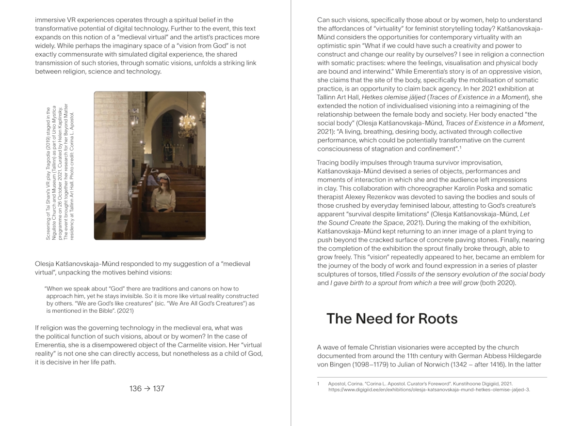 Der Katalog versammelt die Reflexionen der Kuratorinnen Corina L. Apostol und Lívia Nolasco-Rózsás, die visuelle Essays von 19 wegweisenden Künstler*innen und vier ausführliche theoretische Texte von Helen Kaplinsky, Matthew Fuller, Lukás Likavcan, Zsolt Miklósvölgyi und Márió Z. Nemes, die sich mit dem Konzept von Immersion auseinandersetzen.