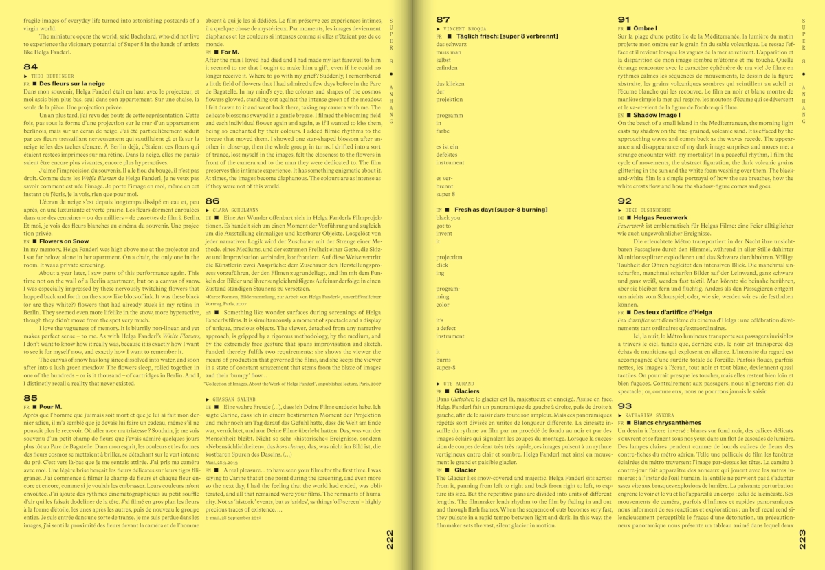 By Helga Fanderl, Silke Schmickl, Sabine Macher, Isabelle Ribadeau Dumas, Ute Aurand, Thibaut Mosneron Dupin, Raphaël Bassan, Robert Beavers, Nicole Brenez, Christine Noll Brinckmann, Bruno Montels, Antonie Bergmeier, Aaron Scott, Carine Doumit, Yves Jammet, Jeannette Muñoz, Paulo Marín, Theo Deutinger, Clara Schulmann, Grassan Salhab, Vincent Broqua, Deke Dusinberre, Katharina Sykora, Els van Riel, Philipp Fleischmann, Philippe-Alain Michaud, Peter Kubelka, Bernhard Uske, Heide Schlüpmann, Nia Perivolaropoulou, Madeleine Bernstorff, Karianne Fiorini