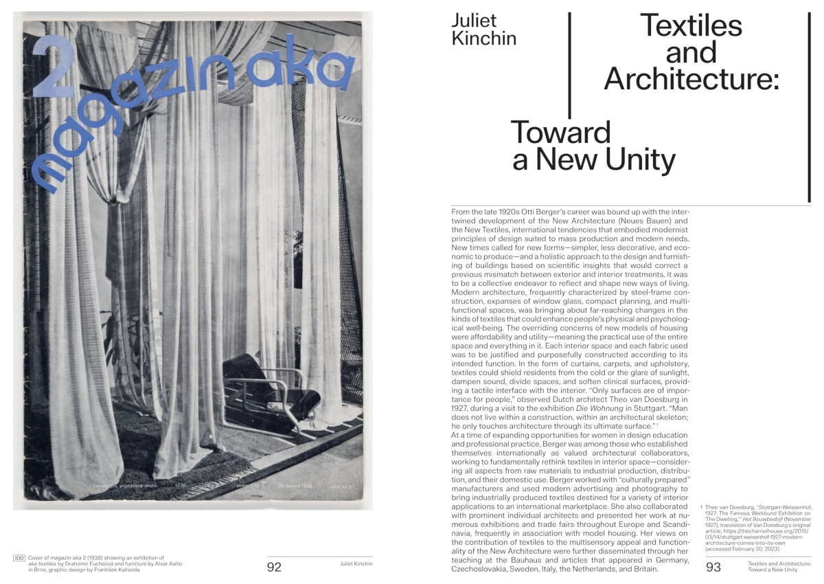 OTTI BERGER (1898–1944) was one of the most important textile designers of the 20th century. Born in Zmajevac, in the Austro-Hungarian Empire, present-day Croatia, she studied in Zagreb from 1921–1926 and at the Bauhaus in Dessau from 1927. Leaving her teaching post at the Bauhaus, she set up her own business in Berlin in 1932 to design fabrics for modern interiors throughout Europe. In 1936, she was banned from working due to her Jewish heritage. Attempts to escape to England and the USA failed. She was deported from Croatia to Auschwitz and was murdered there in 1944. Visual artist and art historian JUDITH RAUM (*1977) has been preoccupied for several years with the Bauhaus textile workshop. Her intensive research in European and North American archives in cooperation with the Bauhaus Archive Berlin, is the first comprehensive study of Berger’s scattered estate.
