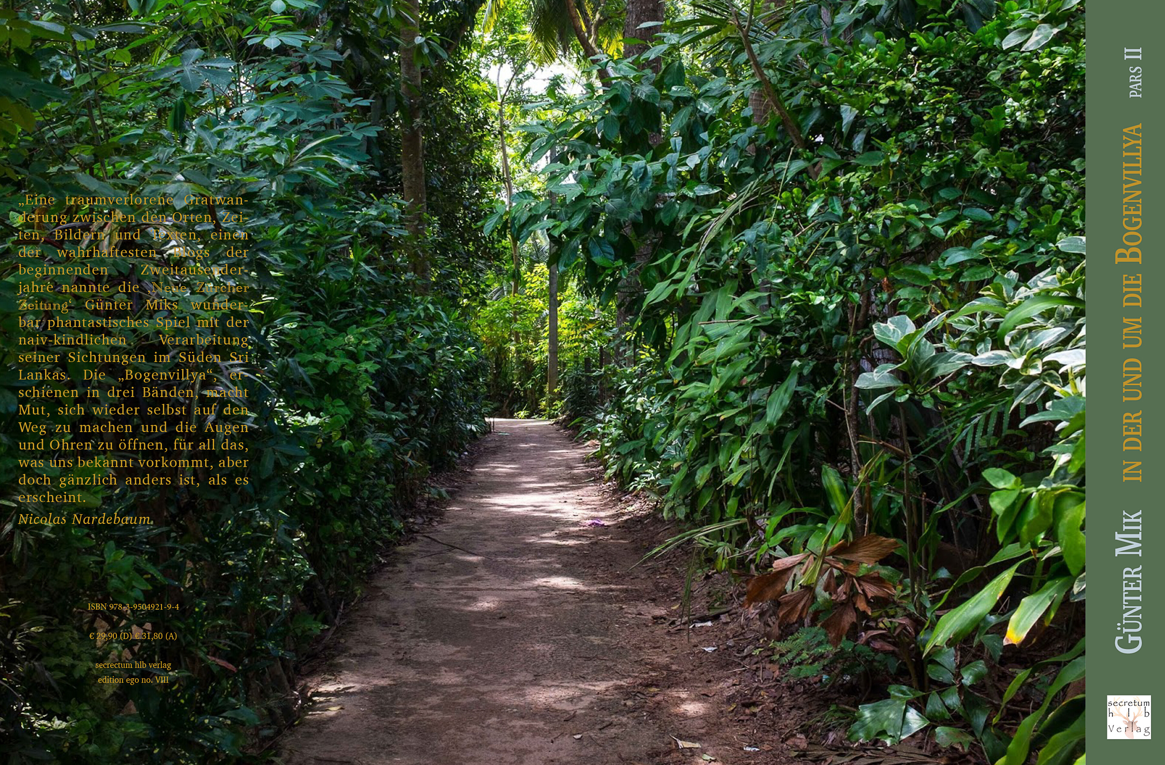 „Eine traumverlorene Gratwanderung zwischen den Orten, Zeiten, Bildern und Texten, einen der wahrhaftesten Blogs der beginnenden Zweitausenderjahre nannte die ‚Neue Zürcher Zeitung‘ Günter Miks wunderbar phantastisches Spiel mit der naiv-kindlichen Verarbeitung seiner Sichtungen im Süden Sri Lankas. Die „Bogenvillya“, erschienen in drei Bänden, macht Mut, sich wieder selbst auf den Weg zu machen und die Augen und Ohren zu öffnen, für all das, was uns bekannt vorkommt, aber doch gänzlich anders ist, als es erscheint. Band 2 - März 2023