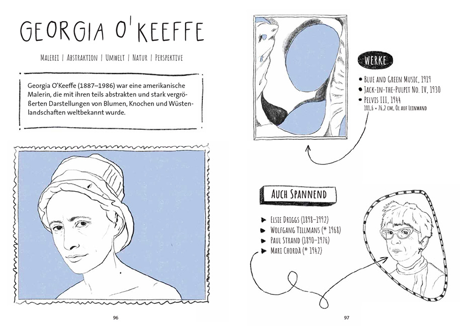 Von Georgia O'Keeffe bis zu den Guerilla Girls: 18 Kunstaufgaben zu Künstlerinnen und ihren Werken.Trend Art Assignments: Perfekt für Kunstunterricht, Workshops und Art Nights.Oeuvres, Stile und Biografien von Künstlerinnen kennenlernen.In der Kunstgeschichtsschreibung gibt es viele blinde Flecken, besonders was das Werk und die Positionen von Künstlerlinnen angeht. Um einige dieser Leerstellen zu füllen, haben Nora Ryser und Réka Szücs anhand von 18 Künstlerinnen 18 Kunstprojekte entwickelt, welche im Unterricht, in Workshops oder an Art Nights durchgeführt werden können. Dabei wird immer ein bestimmter Aspekt der ausgewählten Künstlerin, etwa ihres Oeuvres, Stils oder ihrer Technik fokussiert und im Anschluss anhand von illustrierten Anleitungen gestalterisch umgesetzt. Themen wie Form und Farbe, Körper und Raum, Fotografie und bewegtes Bild, Installation und Produktgestaltung oder Visuelle Kommunikation werden dabei spielerisch erprobt und regen zur Vertiefung an.