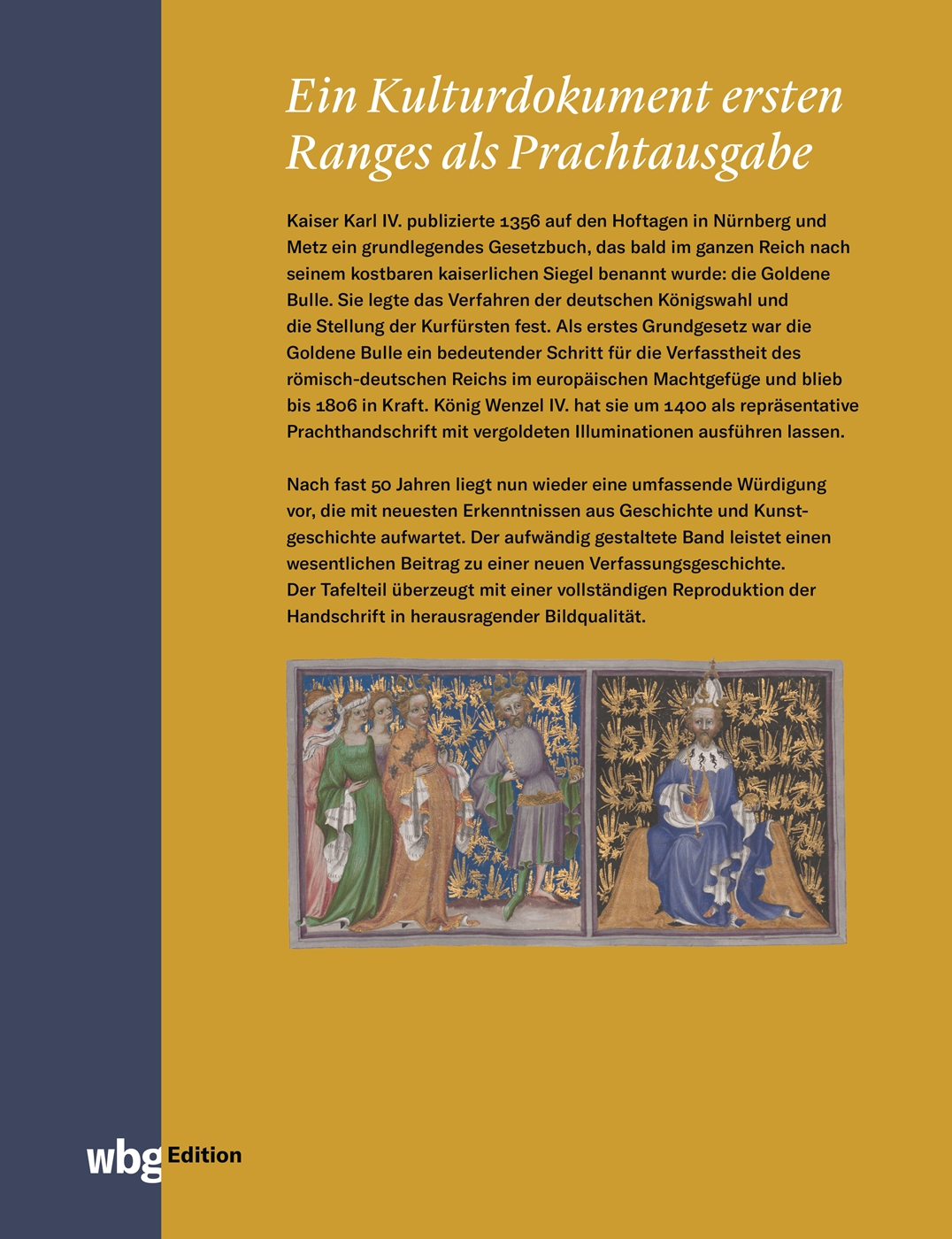Die Goldene Bulle zählt zu den wichtigsten Dokumenten der deutschen Geschichte. Das kaiserliche Gesetzbuch erhielt seinen Namen von dem goldenen Siegel, das der Urkunde angehängt war. Kaiser Karl IV. publizierte die Goldene Bulle 1356 auf den Hoftagen in Nürnberg und Metz. Als erste schriftliche Verfassung des römisch-deutschen Reichs und »Reichsgrundgesetz« blieb sie 450 Jahre bis 1806 in Kraft. König Wenzel IV. hat das wirkmächtige Dokument um 1400 kostbar illuminieren und als Prachthandschrift ausführen lassen. Nach fast 50 Jahren liegt nun wieder eine umfassende Darstellung der Goldenen Bulle aus historischer und kunsthistorischer Sicht vor. Der lateinische Text wird zusätzlich in deutscher Übersetzung geboten. Der Tafelteil überzeugt mit bester Bildqualität. Aktuelle Forschungsergebnisse bewerten die Verrechtlichung von politischen Konflikten neu. Sie legen die tiefere Funktion von Verfassungen als normative Ordnung und ideeller Fluchtpunkt frei und leisten einen wesentlichen Beitrag zu einer neuen Verfassungsgeschichte.