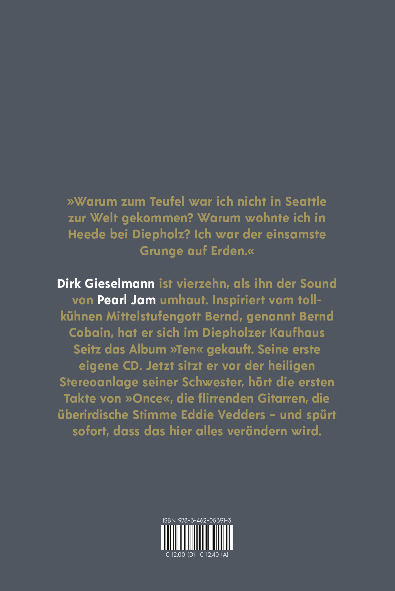 Dirk Gieselmann ist vierzehn, als ihn der Sound von Pearl Jam umhaut. Inspiriert vom tollkühnen Mittelstufengott Bernd, genannt Bernd Cobain, hat er sich im Diepholzer Kaufhaus Seitz das Album »Ten« gekauft. Seine erste eigene CD. Jetzt sitzt er vor der heiligen Stereoanlage seiner Schwester, hört die ersten Takte von »Once«, die flirrenden Gitarren, die überirdische Stimme Eddie Vedders - und spürt sofort, dass das hier alles verändern wird.