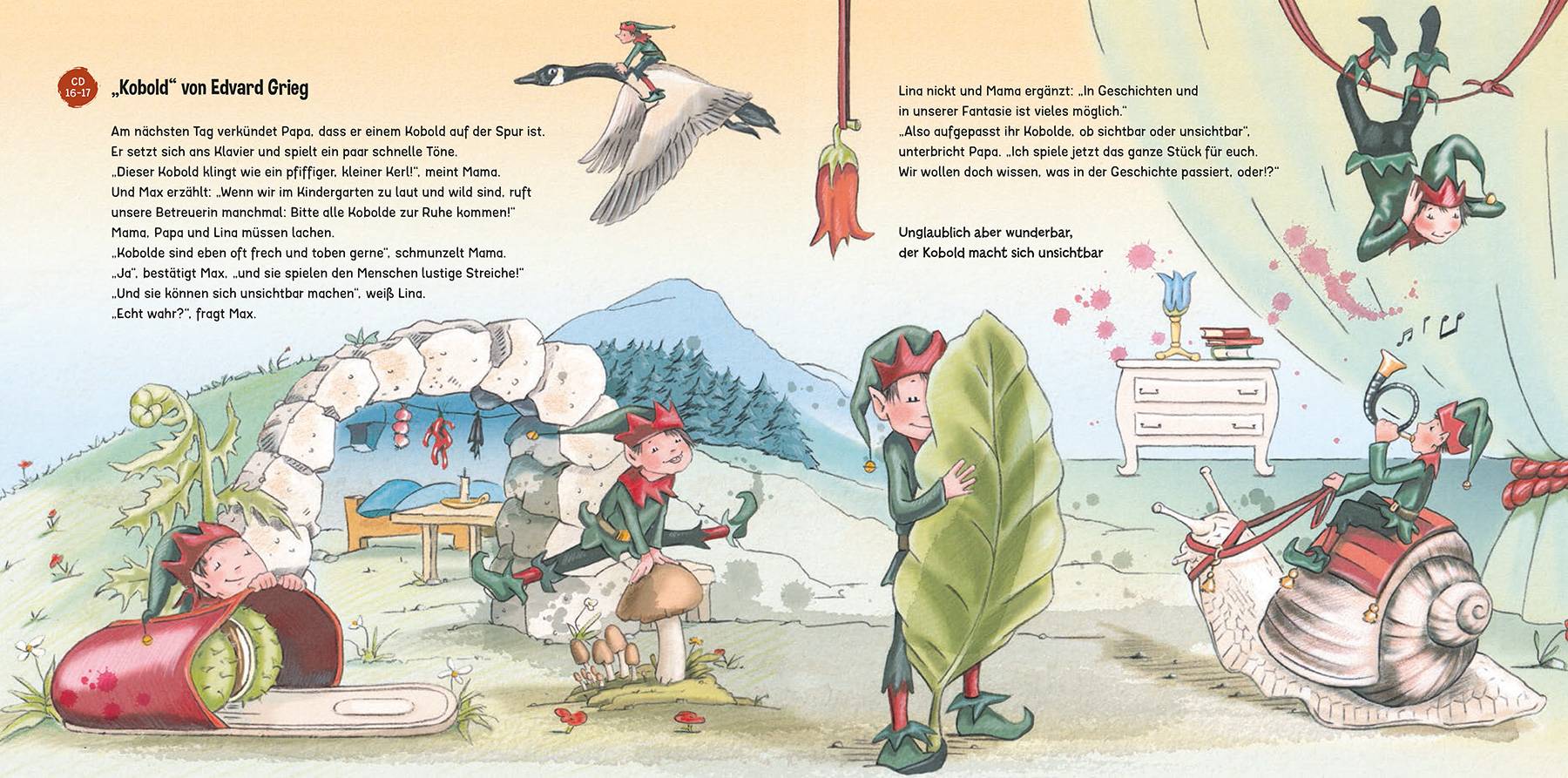 Lina und Max sind wieder bei Lina zu Hause und dieses Mal hat sich Linas Papa etwas ganz Besonderes ausgedacht: Er nimmt die Kinder mit auf eine musikalische Reise in den Zauberwald. Dort treffen sie Elfen, Feen, Prinzen, Hexen und auch den ein oder anderen Kobold. Marko Simsa lädt ein auf eine Reise in den Zauberwald. Begleitet wird diese Fantasiereise von den wirklich magischen Klängen einiger der größten Komponist*innen von Grieg bis Tschaikowski sowie den zauberhaften Illustrationen von Tina Vlachy. Klassik für kleine Ohren. Fantastische Märchenwelten wird für Kinder ab drei Jahren empfohlen. Aus dem Inhalt: - "Elfenmarsch" von Felix Mendelssohn-Bartholdy - "Tanz der Silberfee" von Peter Iljitsch Tschaikowski - "Tanz der Zuckerfee" von Peter Iljitsch Tschaikowski - "Die Hexe Baba Yaga" von Modest Mussorgsky - "Kobold" von Edvard Grieg - "Hachaz" von L. R. d. Ribayaz - "The Spanish Gipsy" von J. Playford - "Elfen" von Bedrich Smetana Die mitreißende Orchestermusik ist auf der beiliegenden CD verfügbar. Das gleichnamige HörErlebnis erscheint ebenfalls im JUMBO Verlag.