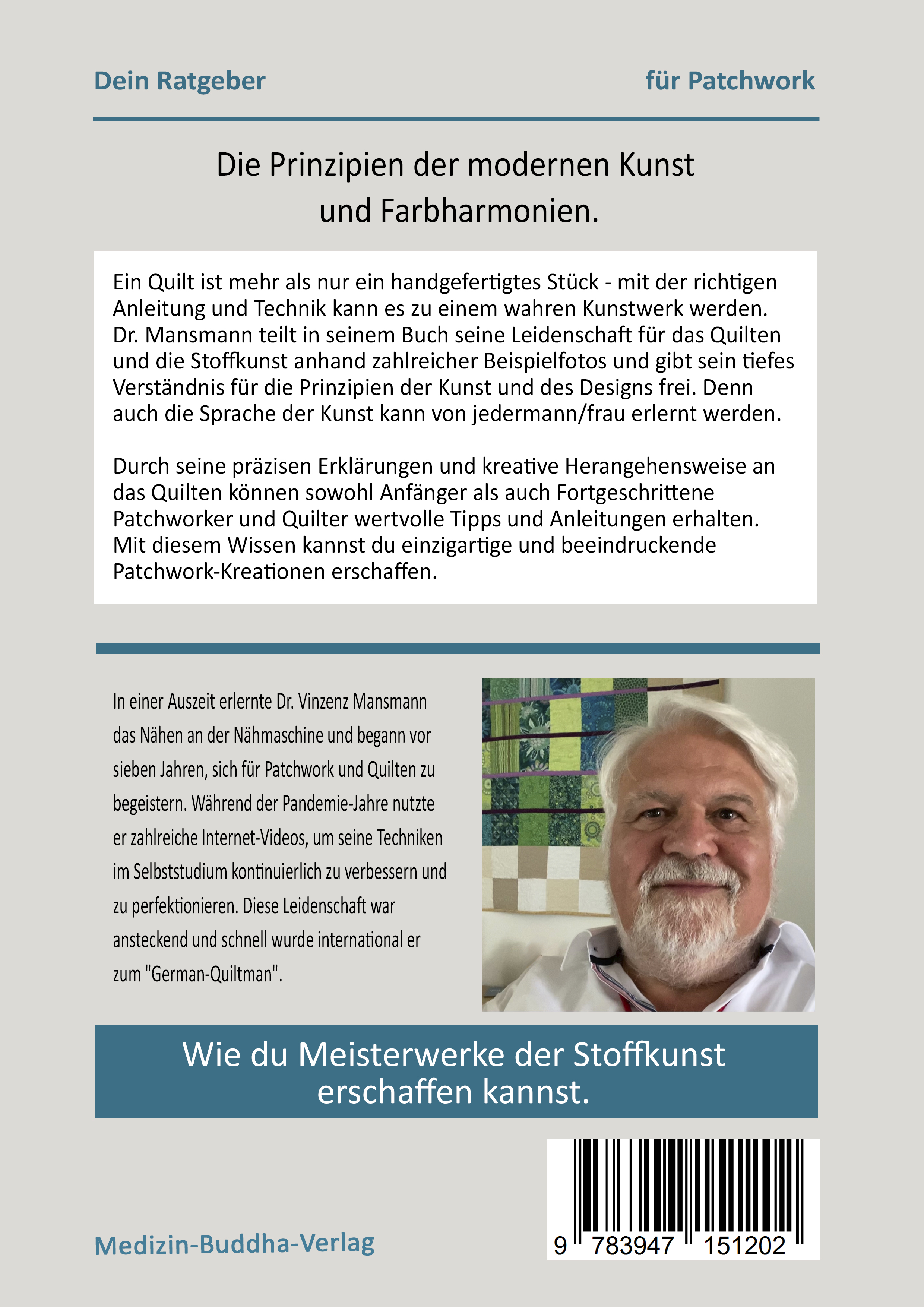 Ein Quilt ist mehr als nur ein handgefertigtes Stück - mit der richtigen Anleitung und Technik kann es zu einem wahren Kunstwerk werden. Dr. Mansmann teilt in seinem Buch seine Leidenschaft für das Quilten und die Stoffkunst anhand zahlreicher Beispielfotos und gibt sein tiefes Verständnis für die Prinzipien der Kunst und des Designs frei. Denn auch die Sprache der Kunst kann von jedermann/frau erlernt werden. Durch seine präzisen Erklärungen und kreative Herangehensweise an das Quilten können sowohl Anfänger als auch Fortgeschrittene Patchworker und Quilter wertvolle Tipps und Anleitungen erhalten. Mit diesem Wissen kannst du einzigartige und beeindruckende Patchwork-Kreationen erschaffen.
