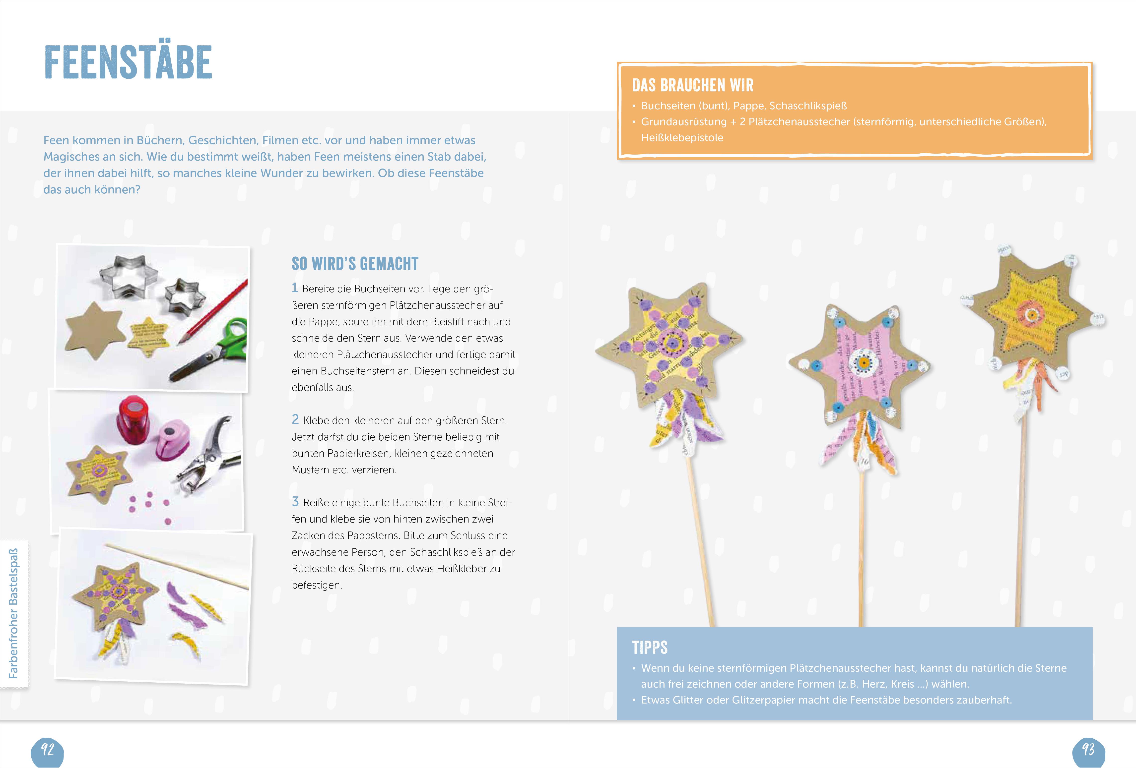 Bastelprojekte sind zu aufwendig? Für diese originellen Basteleien reichen schon ein paar ausgerissene Seiten aus alten Büchern, etwas Farbe, eine gute Idee und der Bastelspaß ist garantiert! Kreativautorin und Grundschullehrerin Judith Watschinger zeigt mehr als 70 tolle Bastelideen für Kinder ab 4 Jahren, von der Fingerpuppe bis zum Feenstab, von der Girlande bis hin zu nachhaltigen Accessoires für Geschenke: Hauptsache leicht gebastelt und kunterbunt!