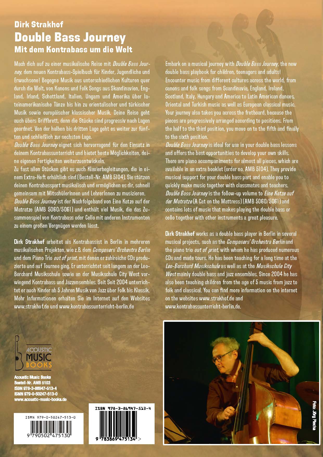 Mach dich auf zu einer musikalische Reise mit Double Bass Journey, dem neuen Kontrabass-Spielbuch für Kinder, Jugendliche und Erwachsene! Begegne Musik aus unterschiedlichen Kulturen quer durch die Welt, von Kanons und Folk Songs aus Skandinavien, England, Irland, Schottland, Italien, Ungarn und Amerika über lateinamerikanische Tänze bis hin zu orientalischer und türkischer Musik sowie europäischer klassischer Musik. Deine Reise geht auch übers Griffbrett, denn die Stücke sind progressiv nach Lagen geordnet. Von der halben bis dritten Lage geht es weiter zur fünften und schließlich zur sechsten Lage.