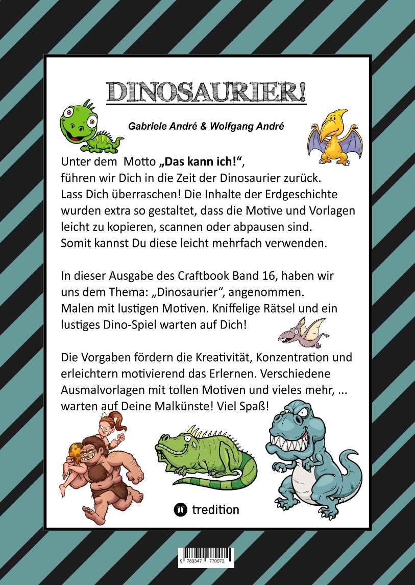 CRAFTBOOK - 100 SUPER AUSMALVORLAGEN - DINOSAURIER - STEINZEIT - RÄTSEL - AUFGABEN - DINOSPIEL BASTELN - URZEIT