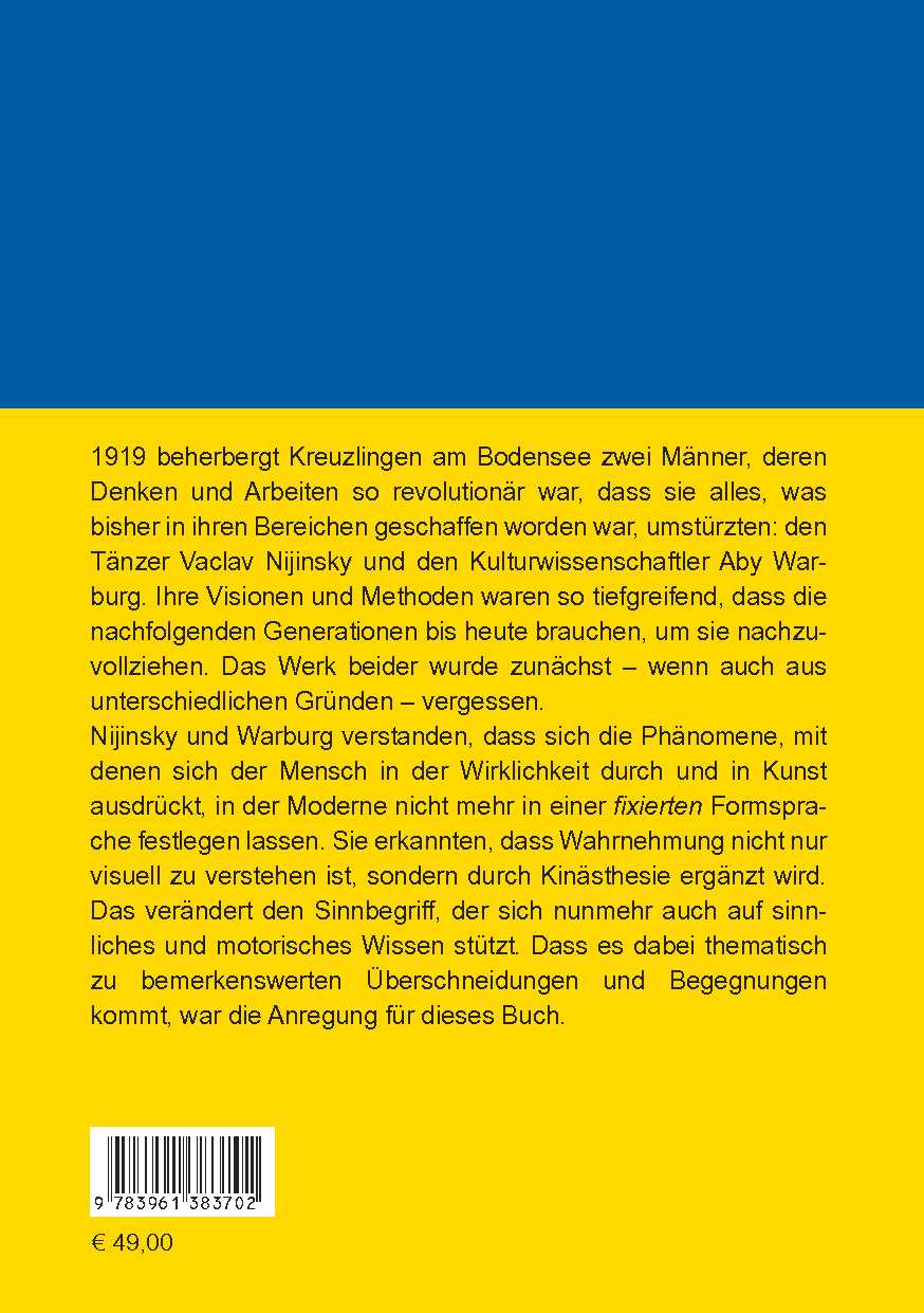 Nijinsky und Warburg verstanden, dass sich die Phänomene, mit denen sich der Mensch in der Wirklichkeit durch und in Kunst ausdrückt, in der Moderne nicht mehr in einer fixierten Formsprache festlegen lassen. Sie erkannten, dass Wahrnehmung nicht nur visuell zu verstehen ist, sondern durch Kinästhesie ergänzt wird. Das verändert den Sinnbegriff, der sich nunmehr auch auf sinnliches und motorisches Wissen stützt. Dass es dabei thematisch zu bemerkenswerten Überschneidungen und Begegnungen kommt, war die Anregung für dieses Buch.