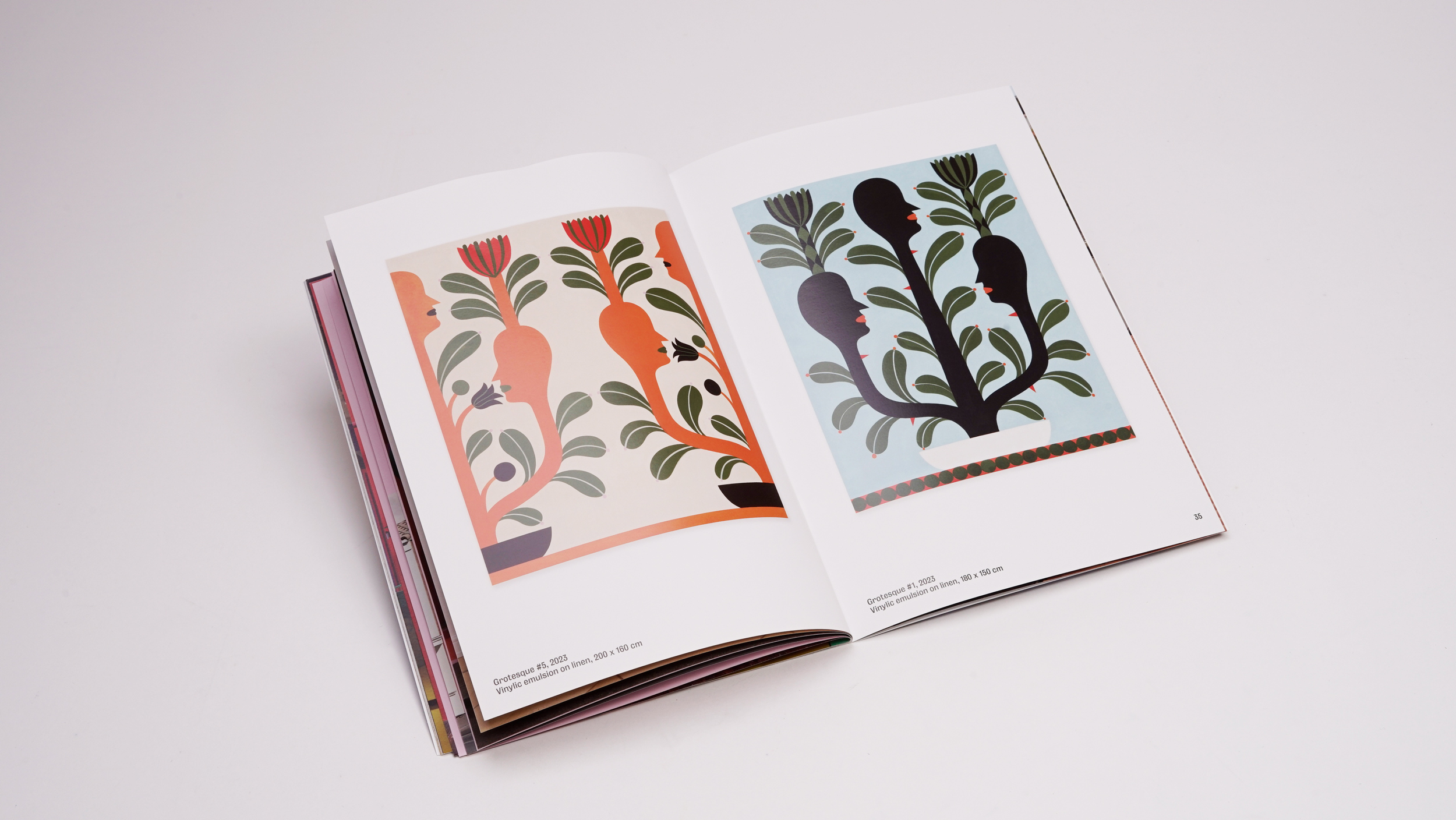 In seinen Gemälden, Skulpturen, Installationen und Wandmalereien greift Agostino Iacurci (geb. 1986 in Foggia, Italien, lebt und arbeitet in Berlin) auf pflanzliche Formen und botanische Sujets zurück. In klaren Kompositionen und leuchtenden Farben gestaltet er fantastische Ornamente, die die Grenzen zwischen Figuration und Abstraktion und die Hierarchien zwischen angewandter Kunst, Design, bildender Kunst und Volkskunst aufheben. Sein zentrales Thema ist der gemalte Garten, in dem er Pflanzen, Menschen, Architektur, Geometrie und Dekoration zu einer theatralischen mondänen Landschaft inszeniert. Iacurci gelingt die gegenseitige Durchdringung von Natur und Zivilisation, wobei er mythologische Motive aus der gesamten Kunst- und Kulturgeschichte, von der Antike bis zum Futurismus und zur Postmoderne, in seinen einzigartigen Stil umsetzt.Agostino Iacuri hat bildende Kunst an der Accademia di Belle Arti in Rom studiert und seit 2009 zahlreiche großformatige Wandgemälde und Installationen für öffentliche und private Institutionen ausgeführt. Außerdem hat er mit internationalen Marken wie Apple, Adidas, Hermès und Starbucks zusammengearbeitet.